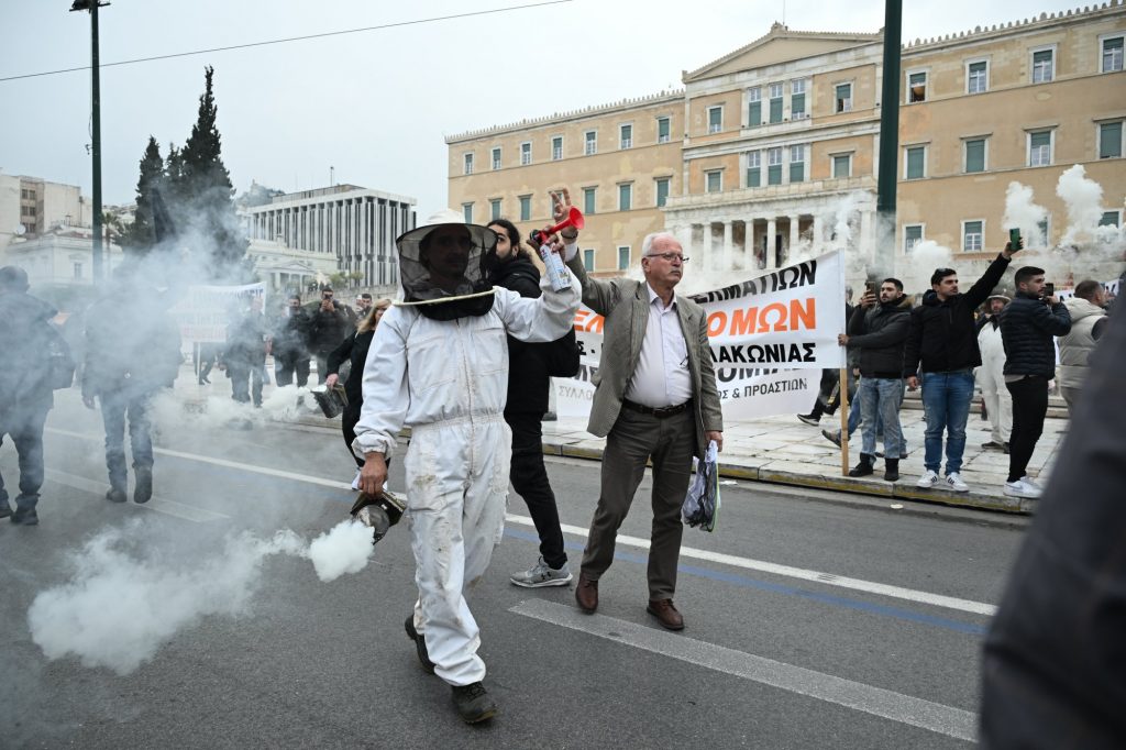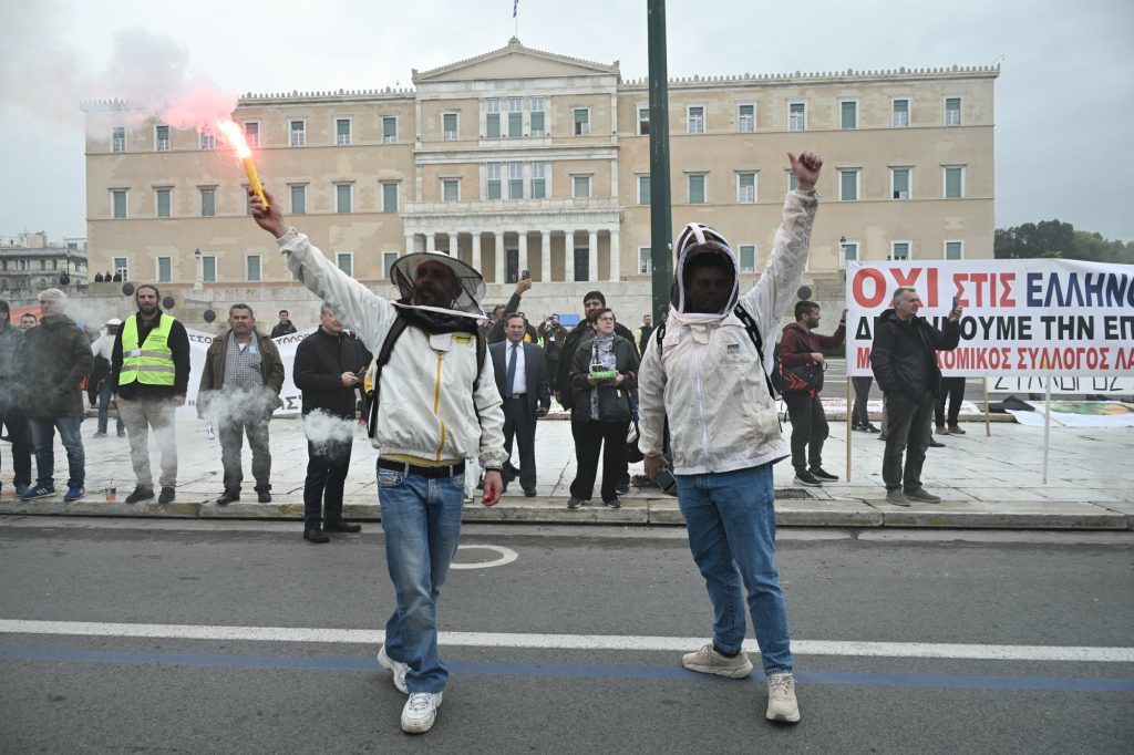 Μετά το μεγάλο συλλαλητήριο των αγροτών στο Σύνταγμα, σήμερα κατέφθασαν οι μελισσοκόμοι.