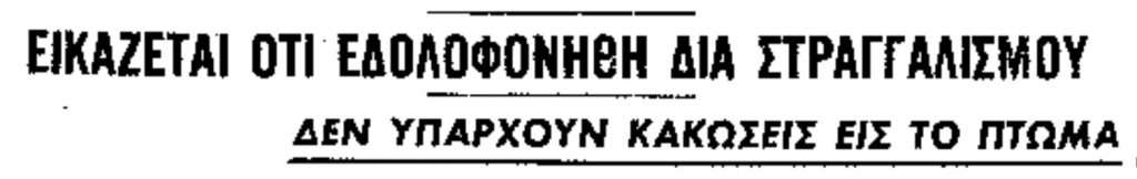 »Αν και υπό της Χωροφυλακής ουδέν ανεκοινώθη, πληροφορούμεθα ότι μέχρι την στιγμήν αυτήν ουδέν αξιόλογον υπάρχει εις χείρας των ανακριτικών αρχών».