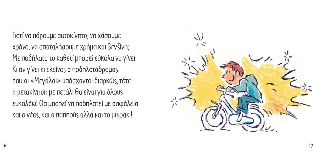 Ένα βιβλίο για παιδιά και όχι μόνο. Μία ιστορία που έχει στόχο να ευαισθητοποιήσει μικρούς και μεγάλους για το περιβάλλον και τη Βιώσιμη Κινητικότητα. Ένα βιβλίο για παιδιά που υπενθυμίζει ότι η προστασία του περιβάλλοντος εξαρτάται από τις καθημερινές πράξεις μας. Οι όμορφες εικόνες που «ζωντανεύουν» την ιστορία είναι του σκιτσογράφου των «ΝΕΩΝ», Κώστα Σκλαβενίτη.