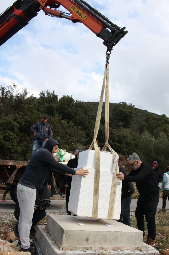 Από νωρίς το πρωί του περασμένου Σαββάτου, οι γλύπτες Γιώργος Σταματόπουλος, Στέλιος Γαβαλάς, ο Γλύπτης – βοηθός Γιώργος Παπασωτηρίου και ο συντηρητής Γιώργος Παγανής – ο «θρύλος του Ιερού βράχου της Ακρόπολης», – συγκεντρώθηκαν στον προαύλιο χώρο του Δημοτικού Σχολείου Κεφαλόβρυσης (Ρίπεσι) και συνεργάστηκαν άρτια στο δύσκολο και απαιτητικό έργο της μεταφοράς και τοποθέτησης των γλυπτών στην τελική τους θέση. Μαζί τους, για άλλη μια φορά, ο πατέρας της «Μύρτιδας» καθηγητής Μανώλης Ι. Παπαγρηγοράκης.