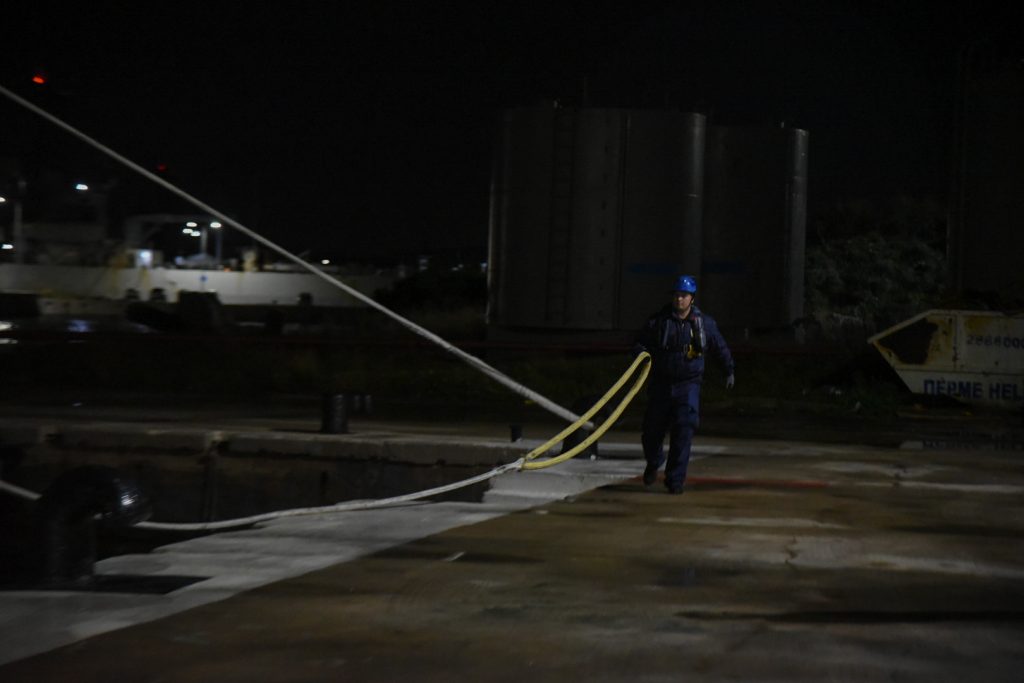 Πριν από την αναχώρησή της, ο υπουργός Εθνικής Άμυνας Νίκος Δένδιας επισκέφθηκε -στον Ναύσταθμο Σαλαμίνας- μετά τη συνεδρίαση του ΚΥΣΕΑ υπό την προεδρία του πρωθυπουργού Κυριάκου Μητσοτάκη.