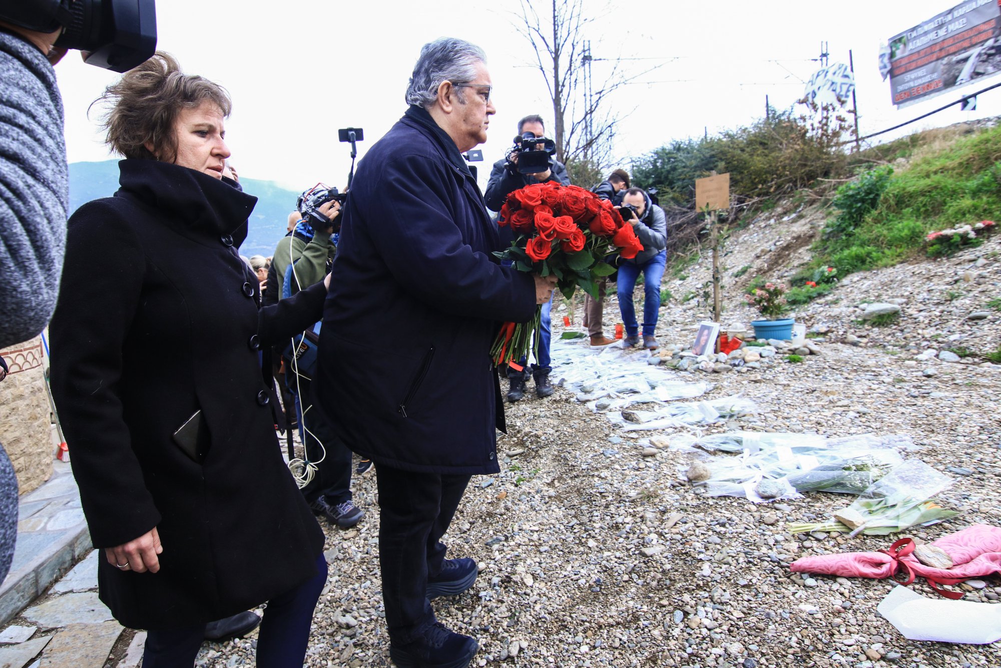 Ο Γενικός Γραμματέας του ΚΚΕ άφησε 57 κόκκινα τριαντάφυλλα στη μνήμη των αδικοχαμένων. Μετά ο ίδιος μετέβη στην κεντρική πλατεία της Λάρισας, όπου έκανε δηλώσεις τόσο για τη σημερινή επέτειο, όσο και για ζητήματα που ταλανίζουν την κοινωνία, και έχουν τεθεί επί τάπητος με τη σημερινή απεργιακή κινητοποίηση.