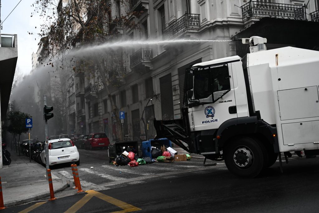 Η ένταση μεταφέρθηκε αργότερα προς την Πανεπιστημίου με τους κουκουλοφόρους να πηγαίνουν προς τα Εξάρχεια. Μάλιστα, η αστυνομία έβγαλε αύρα την οποία χρησιμοποίησε για να διαλύσει την ομάδα των κουκουλοφόρων. Ενώ έγιναν και προσαγωγές.
