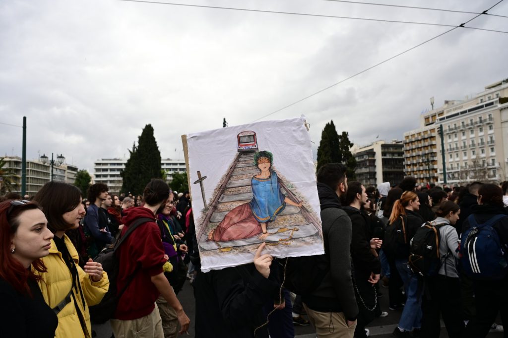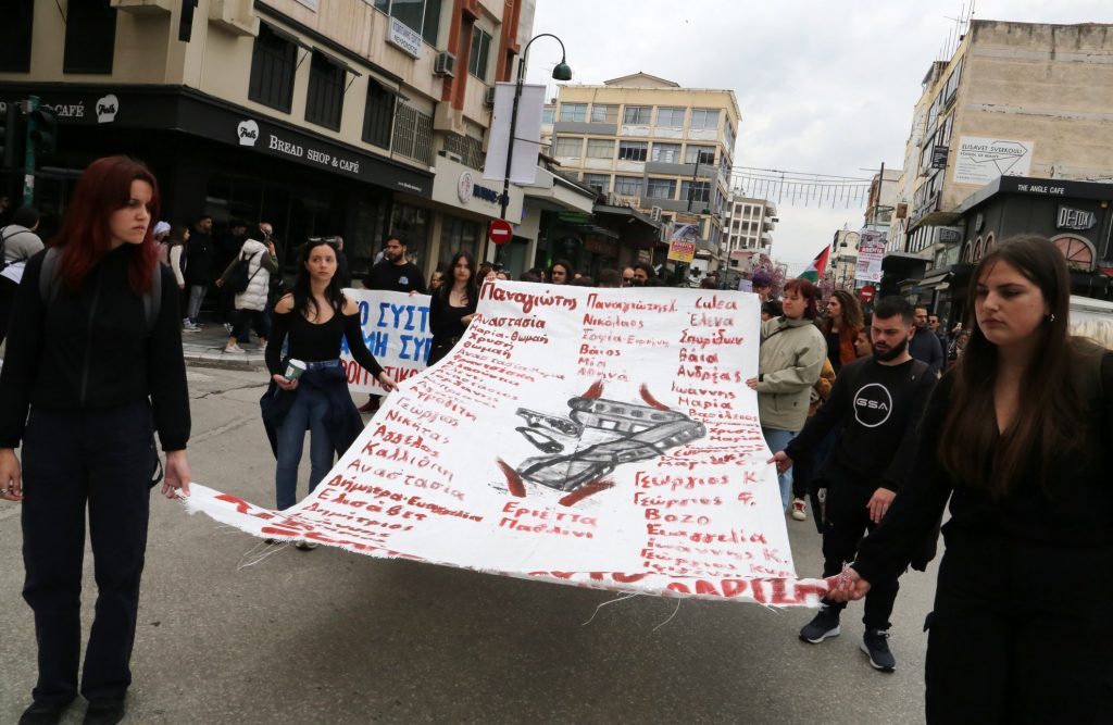 “Το αίμα κυλάει, εκδίκηση ζητάει“, φωνάζουν φοιτητές στην πορεία έξω από τον ΟΣΕ.