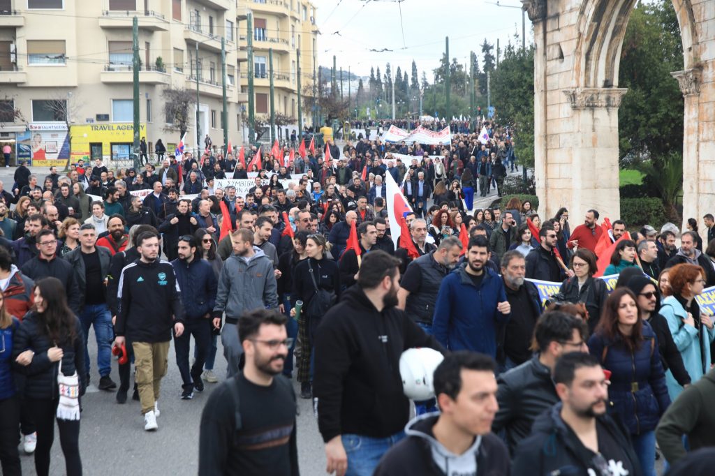 Λίγο μετά τις 11 το πρωί η ΑΔΕΔΥ , εργατικά σωματεία και φορείς  με κεντρικό σύνθημα «οι ζωές μας πάνω από τα κέρδη τους, πραγματικές αυξήσεις μισθών και όχι αυξήσεις κοροϊδίας»  συγκεντρώθηκαν αρχικά στην πλατεία Κλαυθμώνος. Η μεγάλη απεργιακή συγκέντρωση σ ξεκίνησε με ενός λεπτού σιγή για τους 57 νεκρούς από το σιδηροδρομικό δυστύχημα στα Τέμπη.