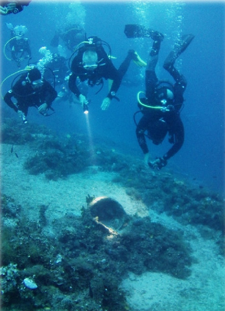Άποψη της θέσης με αμφορέα στο ναυάγιο του Τηλεγράφου