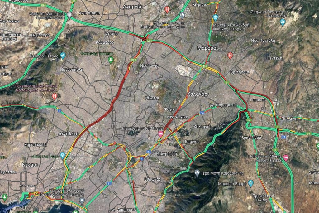 Την ίδια ώρα μεγάλα προβλήματα παρατηρούνται τόσο στον Κηφισό όσο και στην Κηφισίας, ενώ μεγάλες καθυστερήσεις υπάρχουν και στη Μεσογείων.