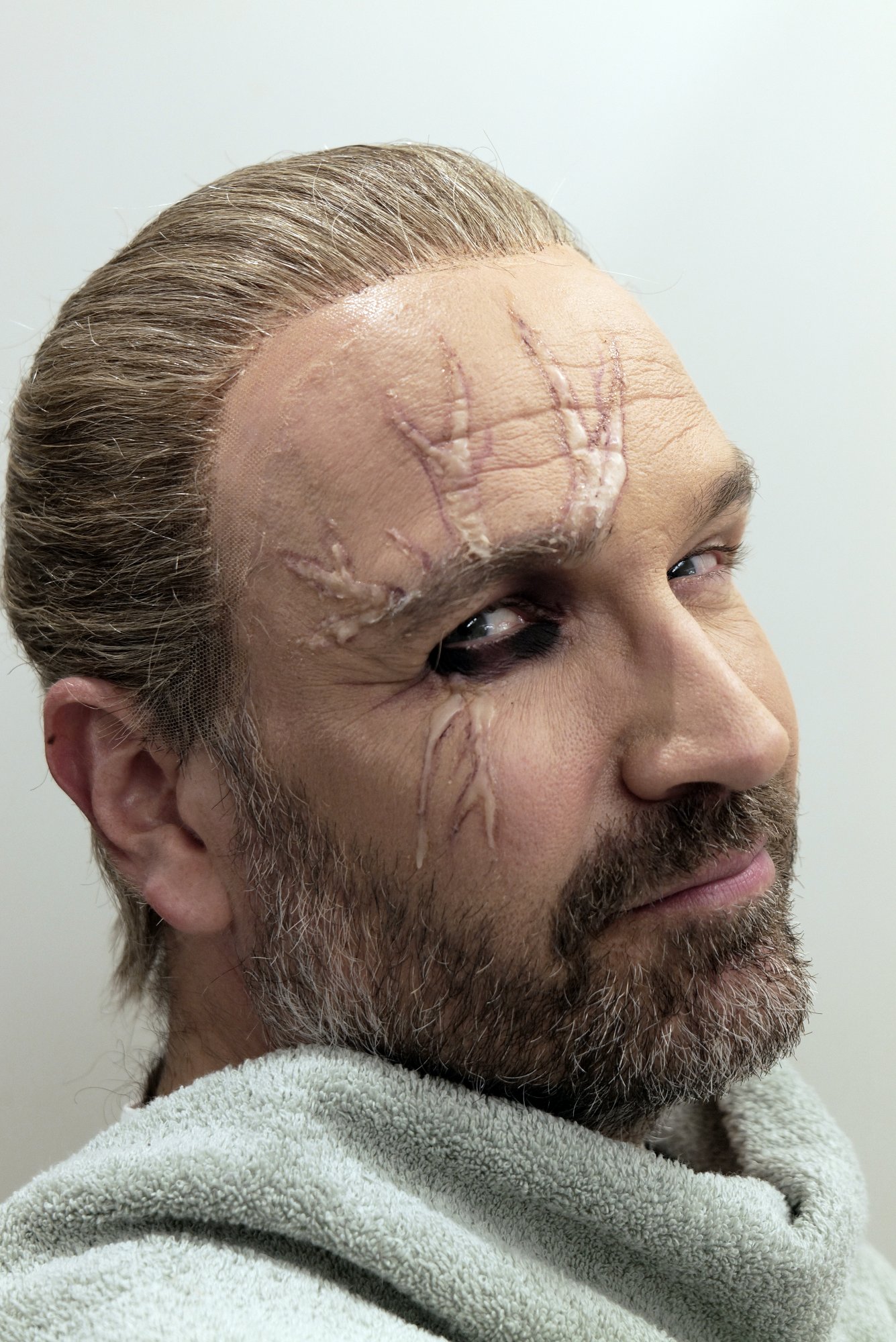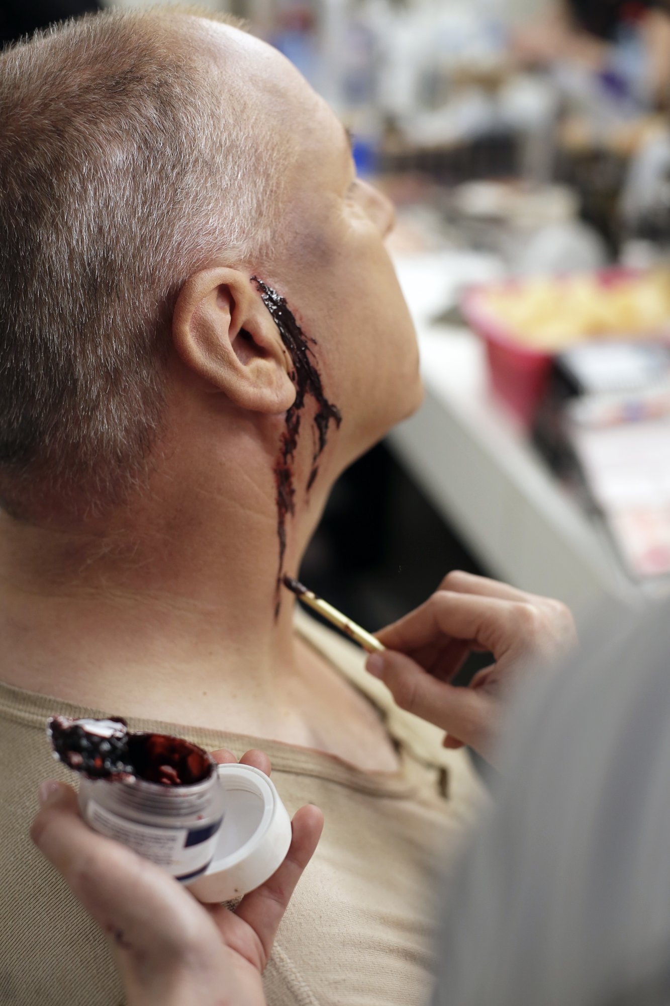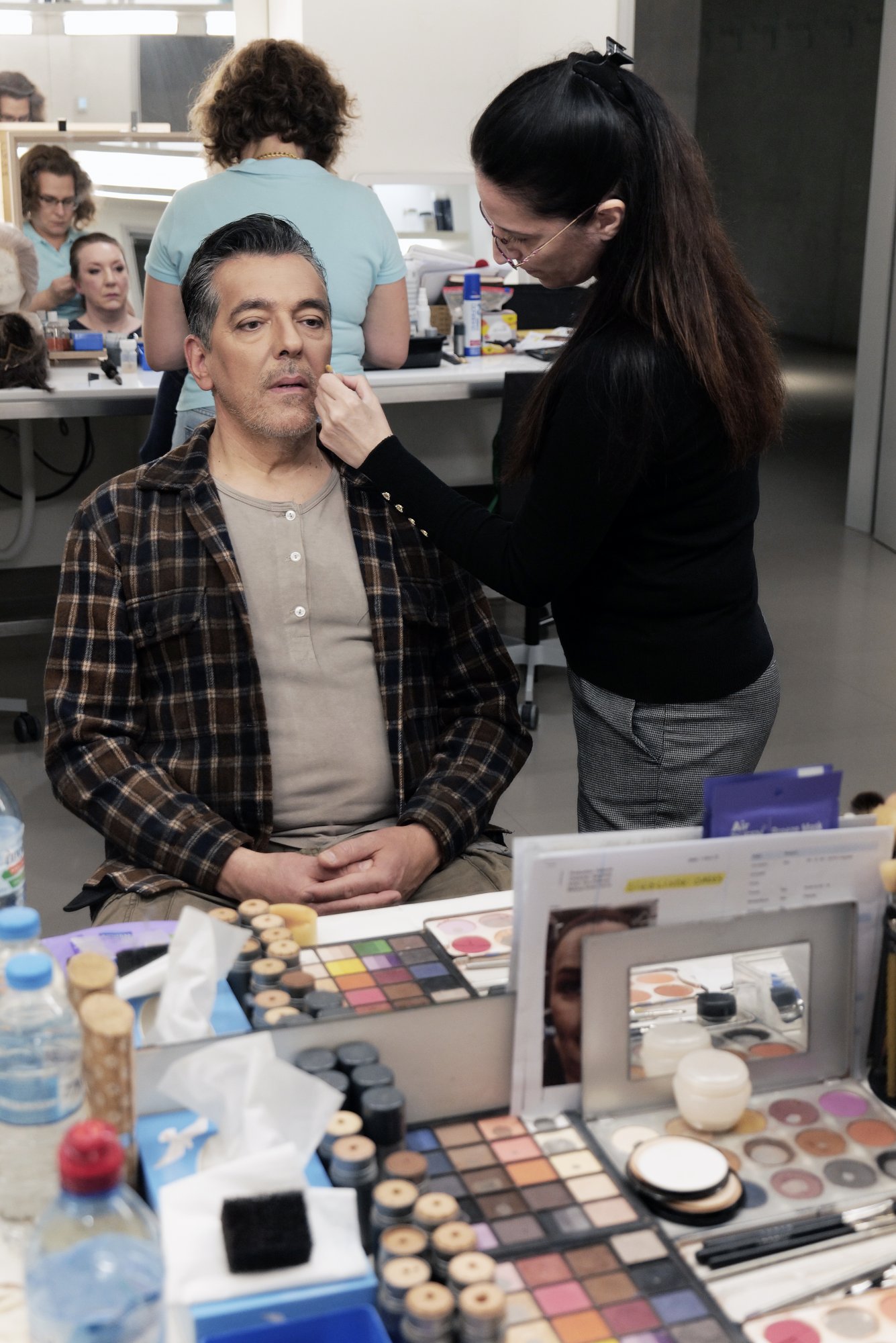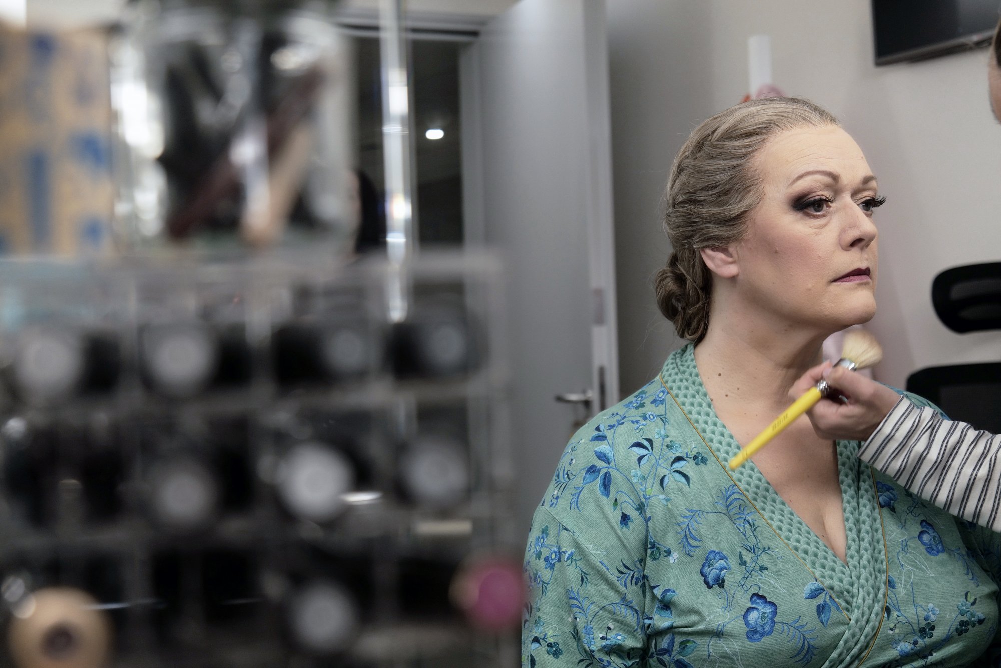 Ο Πέτρος Μαγουλάς κατά την προτοιμασία του στο μακιγιάζ για τις ανάγκες του ρόλου του Χούντιγκ. @Νίκος Κόκκας
