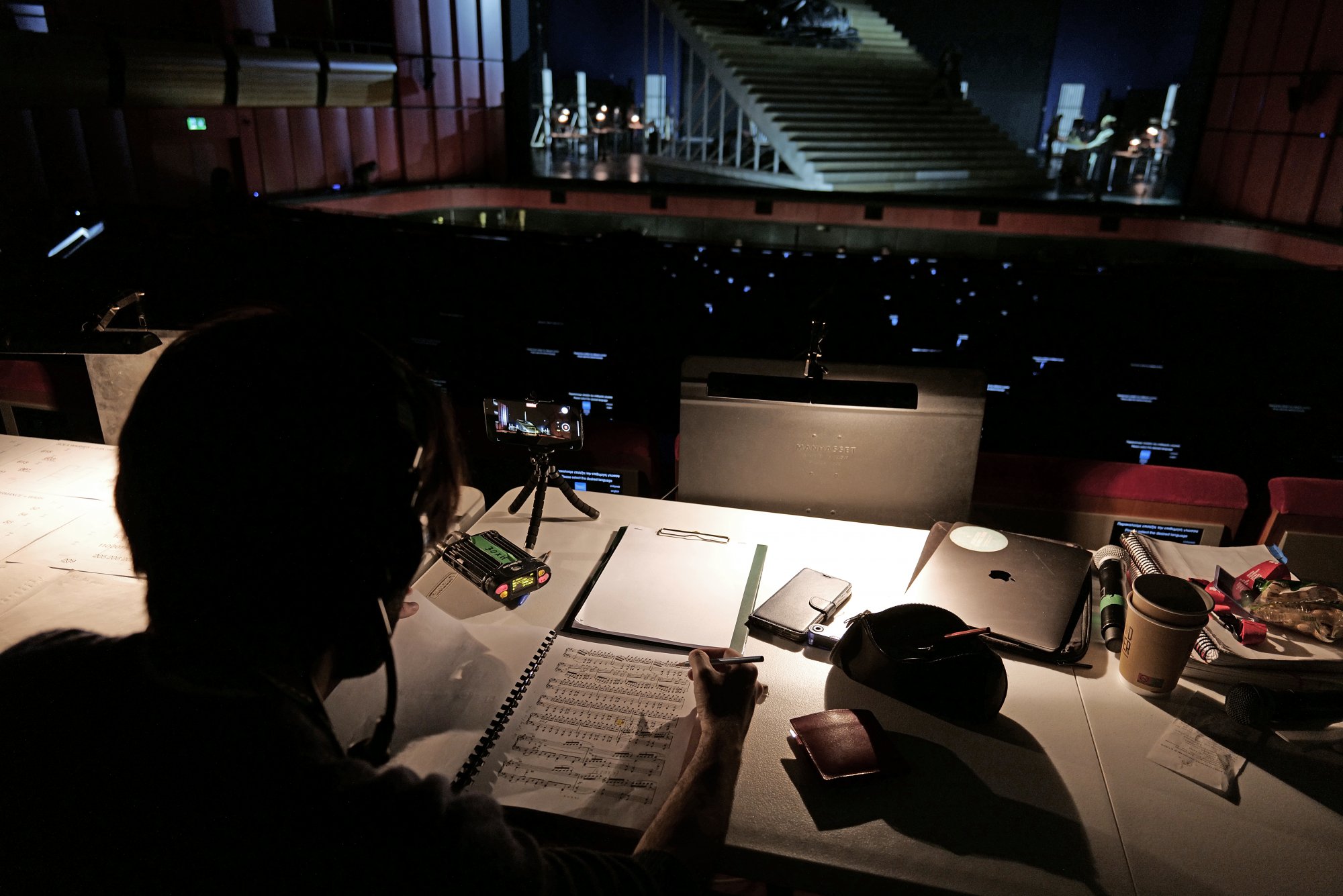 Ο βοηθός σκηνοθέτη Γιώργος Παπαδάκης επιβλέπει την πρόβα της «Βαλκυρίας». @Νίκος Κόκκας
