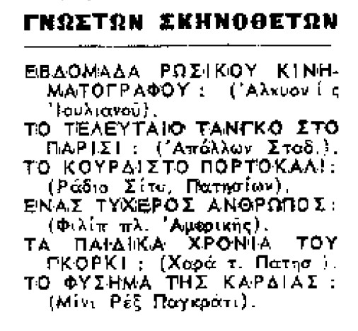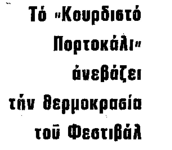 »Η προσπάθεια που έγινε από την Γραμματεία του Φεστιβάλ για να πραγματοποιήση αύριο (σήμερα) δύο προβολές της ταινίας, για να ικανοποιήση την ζήτηση, δεν τελεσφόρησε, προφανώς λόγω αντιρρήσεων του εισαγωγέως.