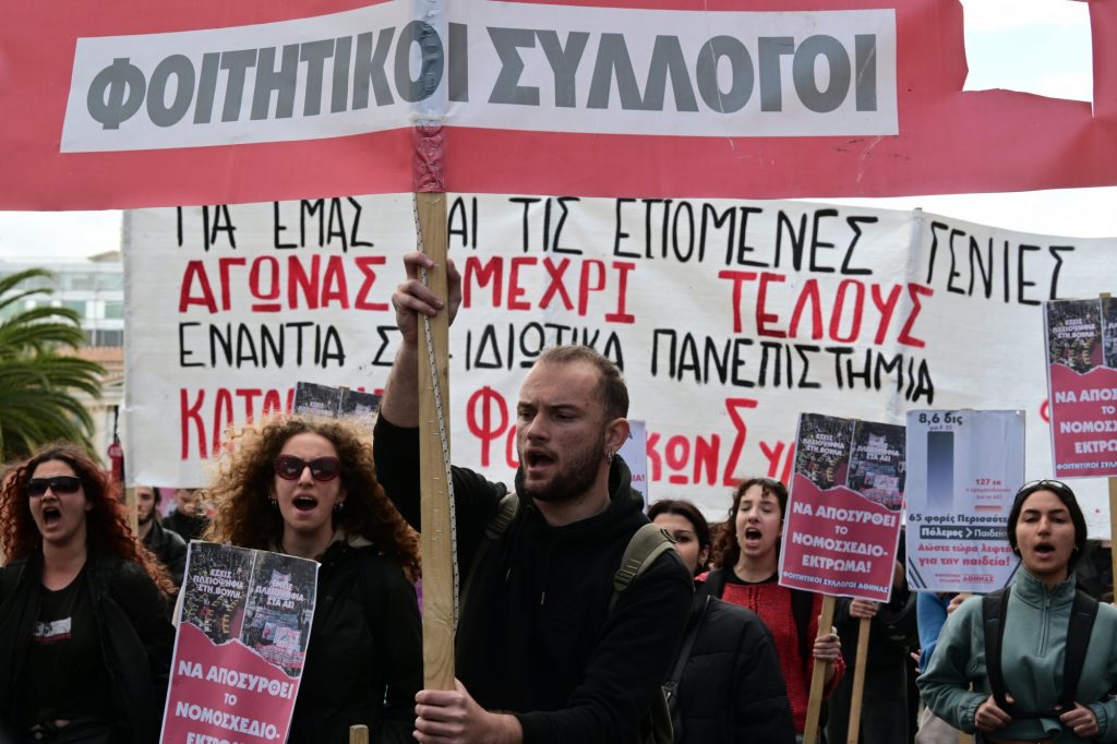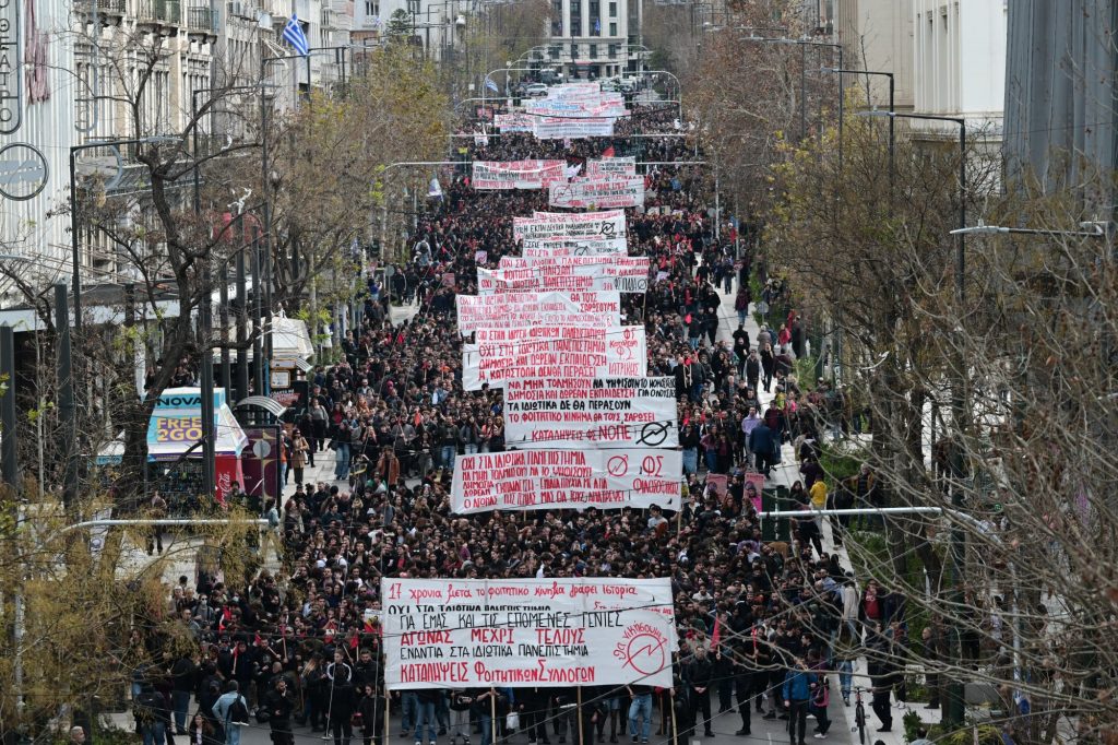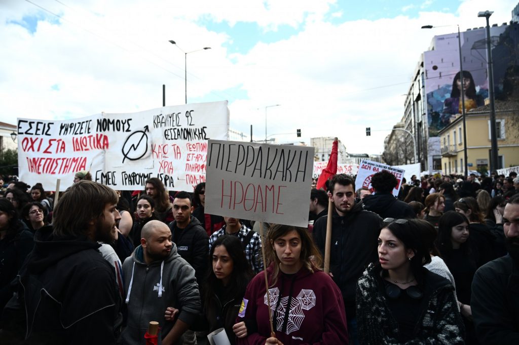 Φοιτητές, μαθητές και καθηγητές πραγματοποιούν από τις 12:00 το μεσημέρι συγκέντρωση στα Προπύλαια, ενώ στη συνέχεια θα κατευθυνθούν για να διαδηλώσουν προς της Βουλή.