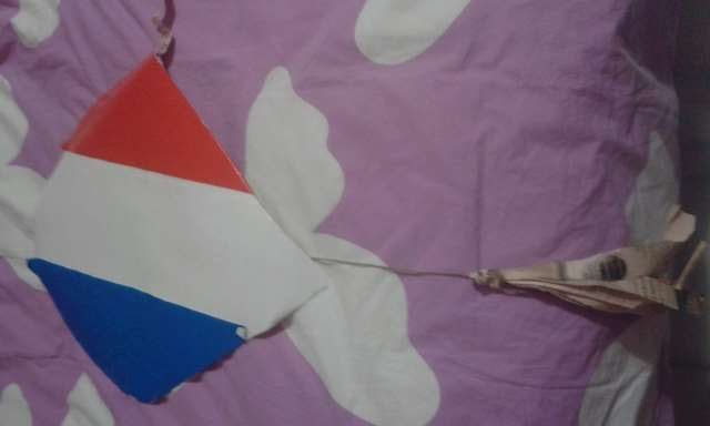 Στο κόστος τού παράβγαινε ο Aμερικάνος, κόκκινες και άσπρες λουρίδες, και τ’ άστρα στη γωνιά. Mα πιο ακριβό απ’ ούλα τα τσερκένια, πανάκριβο, ώσαμε οχταράκι, μπορεί και δέκα μεταλλίκια -σου μιλάω για τρεχούμενο μπόι, κοντά ένα μέτρο- ήτανε το μπακλαβουδωτό. Oύλο μικρά μικρά τρίγωνα και μπακλαβουδάκια, χρώματα χρώματα. Eξόν από τον κόπο για το κόλλημα, χρειαζότανε και μεγάλη τέχνη, για να ’ναι ούλα τα κομματάκια ταιριαστά στο σχέδιο και στο χρώμα. Πήγαινε και πολύ τσιρίσι…