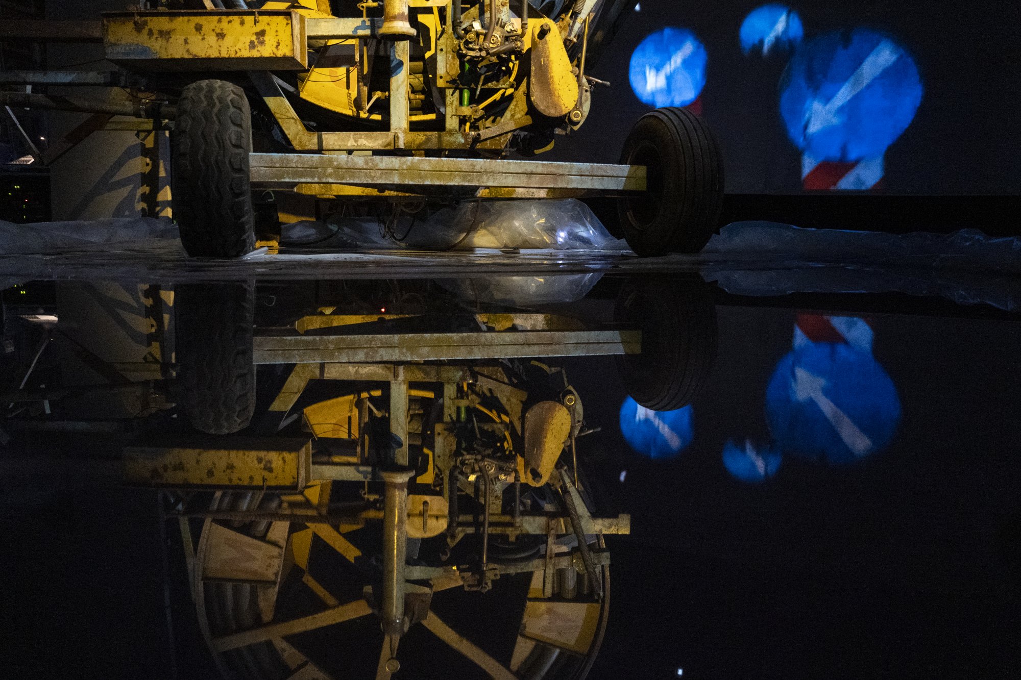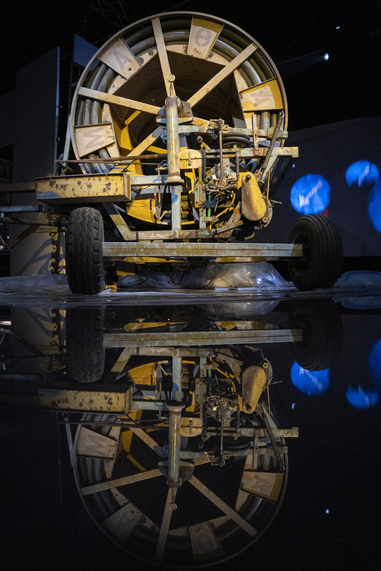 Ειδικότερα, το έργο αποτελείται από ένα αγροτικό μηχάνημα άρδευσης από τη Θεσσαλία, το οποίο συντονίζει σε πραγματικό χρόνο τον ήχο, την κινούμενη εικόνα, και το φωτιστικό περιβάλλον της εγκατάστασης. Πίσω του, μια βιντεοπροβολή και ηχητική σύνθεση παράγει ηχοτοπία, δημιουργεί την αίσθηση ενός περιπάτου. Το νερό κάτω από το αρδευτικό αναπαράγεται και ανακυκλώνεται. Κάποτε στο παρελθόν, στις δεκαετίες του ’70 και του ’80, το αρδευτικό επέτρεψε τη μονοκαλλιέργεια στη Θεσσαλία και «παρά την εξάντληση των υδάτινων χώρων που προκάλεσε, εξασφάλισε στους αγρότες χώρο για περισσότερη παραγωγή». Τώρα βρίσκεται στην καρδιά της εικαστικής εγκατάστασης.
