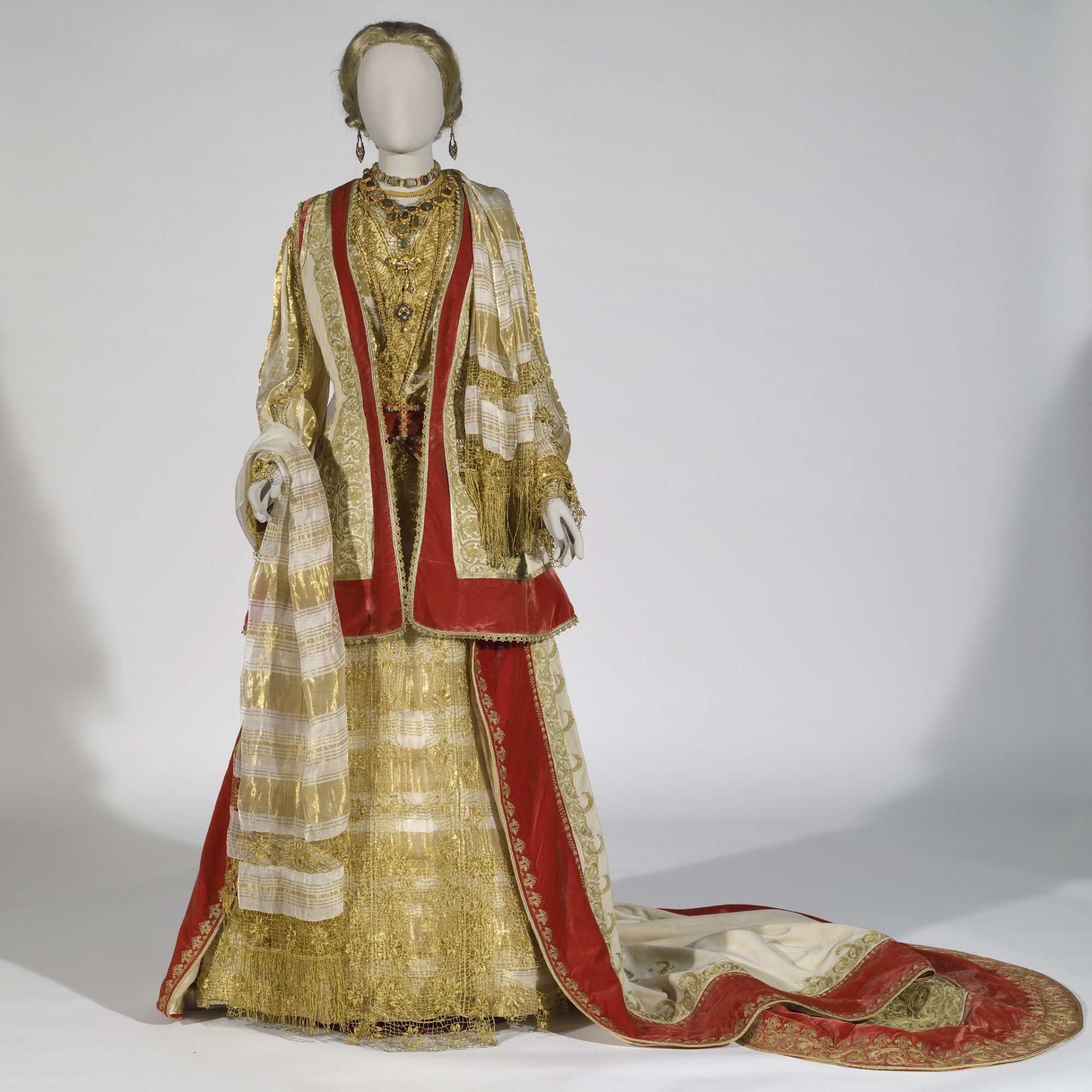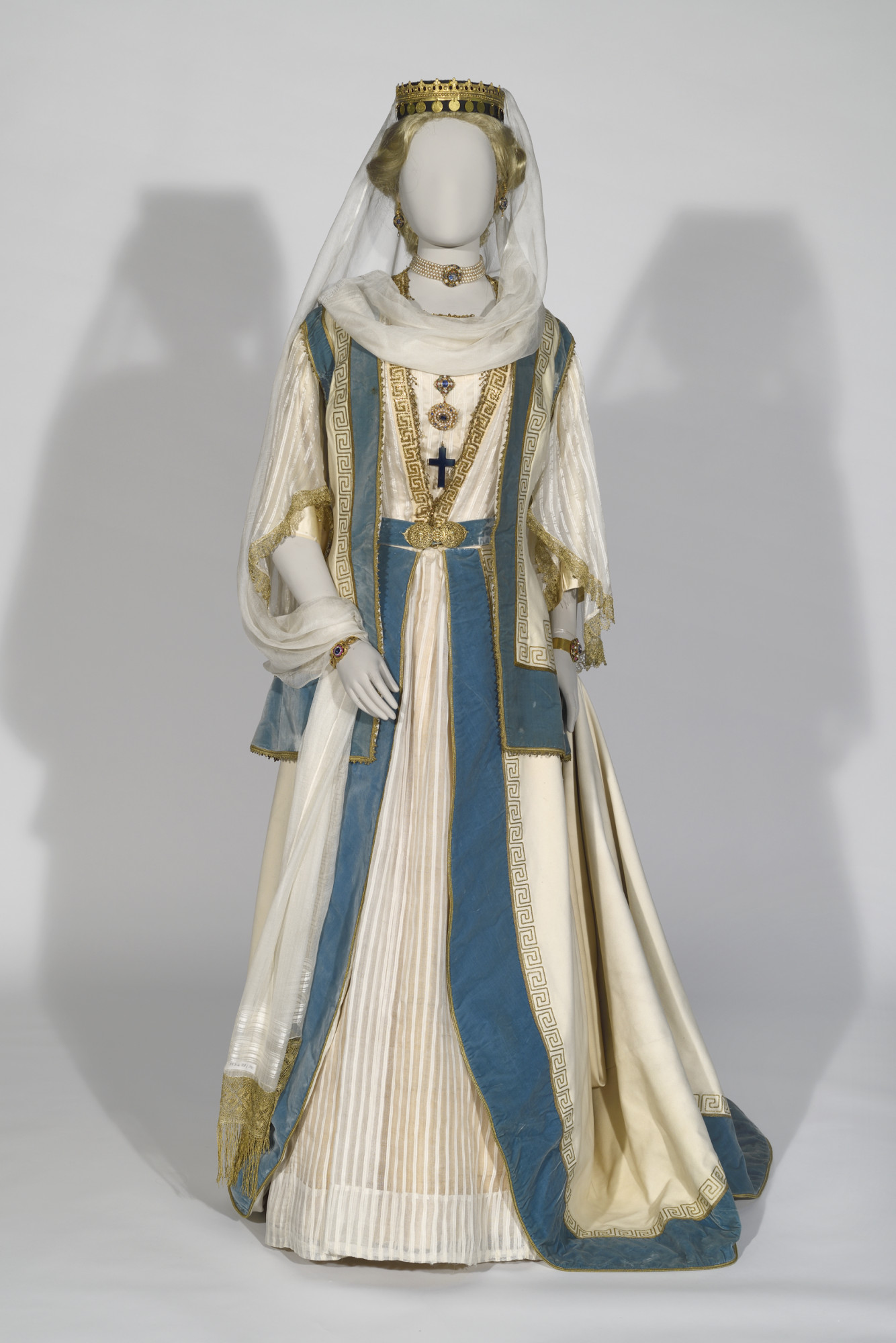 Επίσημη ενδυμασία της Αυλής κατά την εποχή της βασίλισσας Όλγας, η οποία ανήκε στη Μαρία Βοναπάρτη, σύζυγο του πρίγκηπα Γεωργίου. Δωρεά πριγκίπισσας Μαρίας Βοναπάρτη.