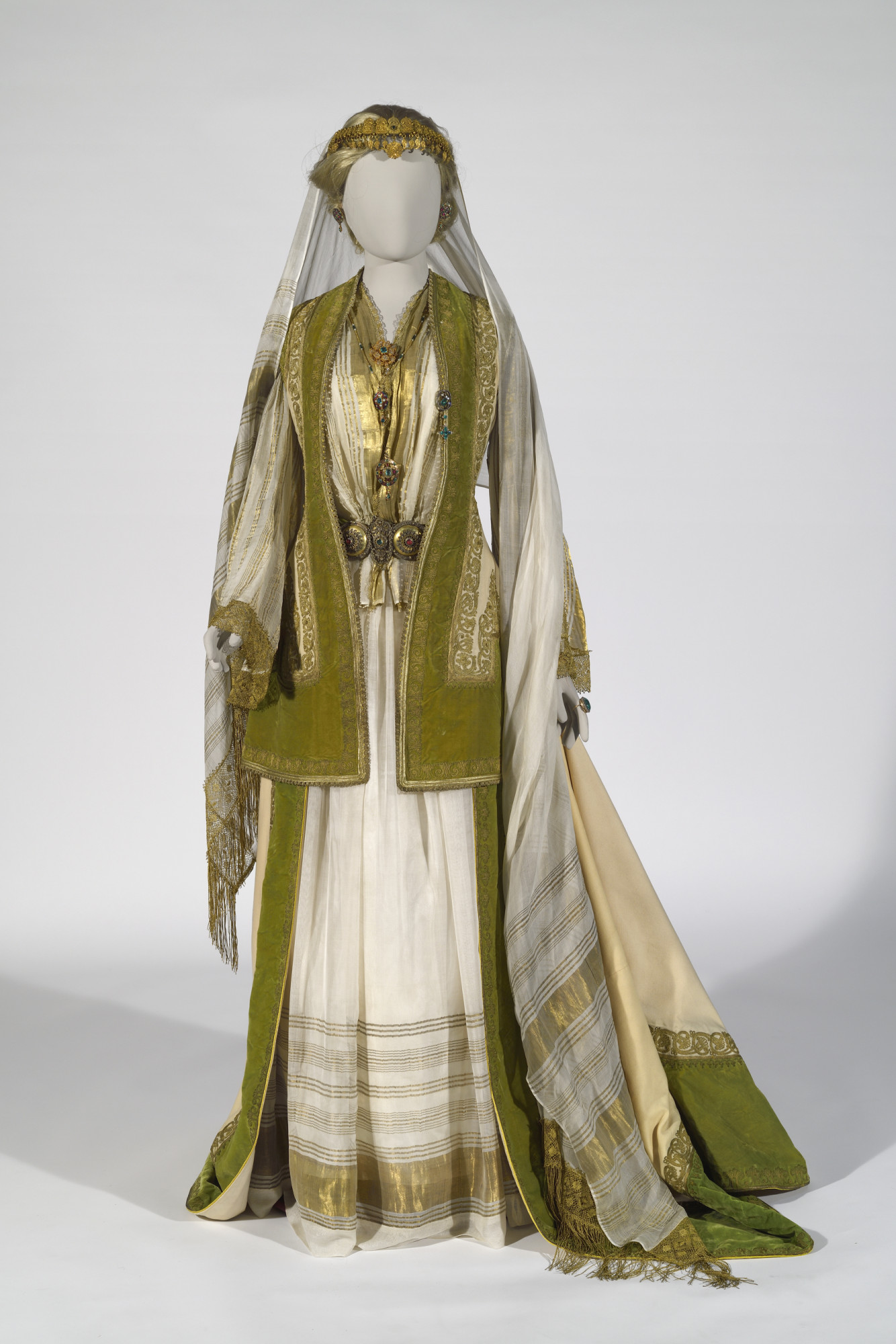 Ενδυμασία των κυριών επί των τιμών της βασίλισσας Όλγας, η οποία ανήκε στην Ελένη Μελά. Δωρεά Αλεξάνδρας Μελά.