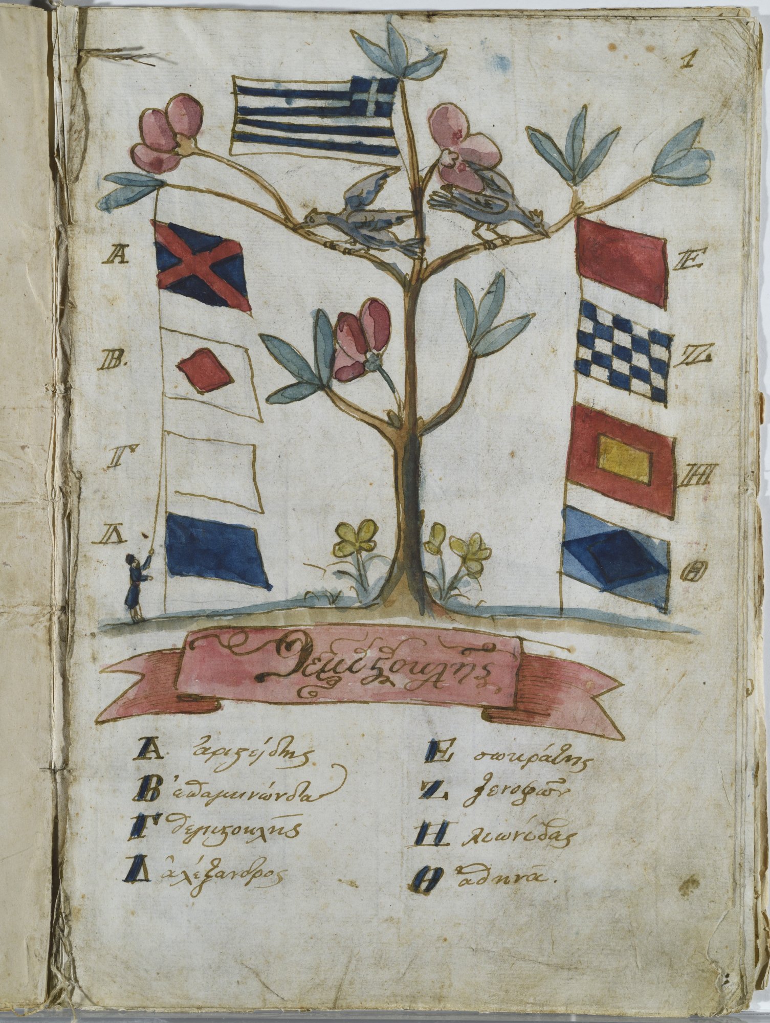 Σηματολόγιο της ναυαρχίδας «Θεμιστοκλής» Υδατογραφία σε χαρτί. Δωρεά Στέφανου Ξενόπουλου.