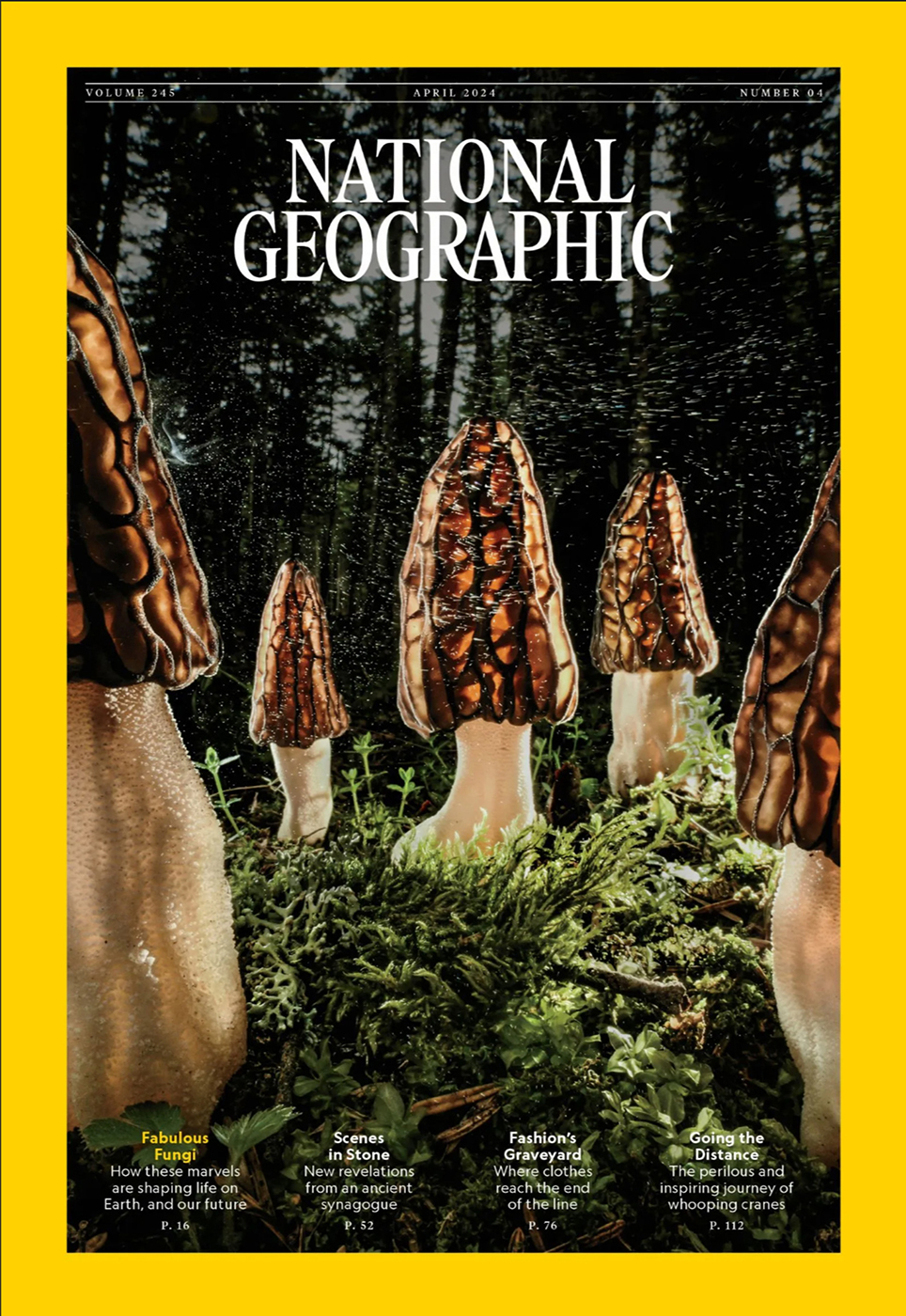 Το κρυφό αυτό βασίλειο της φύσης δεν είχε αυτήν την τιμή ως τώρα. Όμως όλα δείχνουν πως τώρα είναι η στιγμή τους, αφού στο ένα από τα δύο εξώφυλλα με τα οποία κυκλοφορεί το τεύχος Απριλίου 2024 φιγουράρει μια εντυπωσιακή συστάδα από μορχέλες, ενώ στο άλλο ένα πανέμορφο μοναχικό μανιτάρι του γένους Limacella. Και οι δύο αυτές μοναδικές φωτογραφίες είναι του πολλάκις βραβευμένου Έλληνα φωτογράφου Αγοραστού Παπατσάνη.