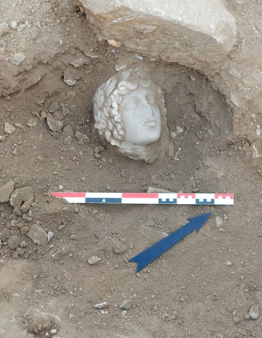 Την κεφαλή ενός δαφνοστεφανωμένου άνδρα που φαίνεται πως ανήκει σε άγαλμα του θεού Απόλλωνα έφερε στο φως ανασκαφή που πραγματοποίησε η ομάδα του Αριστοτελείου Πανεπιστημίου στους Φιλίππους.