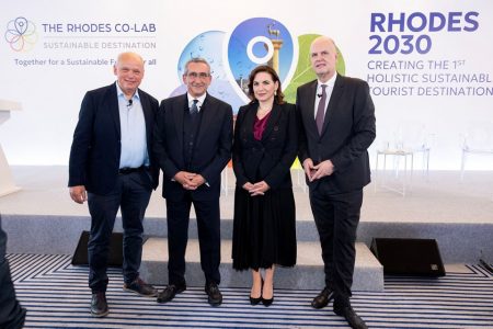 Τον ολιστικό μετασχηματισμό της Ρόδου σε έναν βιώσιμο τουριστικό προορισμό παρουσίασαν την Πέμπτη 28 Μαρτίου στο Ξενοδοχείο Grand Hyatt ο Περιφερειάρχης της Περιφέρειας Νοτίου Αιγαίου, κ. Γιώργος Χατζημάρκος, ο Διευθύνων Σύμβουλος του Ομίλου TUI, κ. Sebastian Ebel και ο Πρόεδρος του Ιδρύματος TUI Care Foundation, κ. Thomas Ellerbeck. Πρόκειται για μία εμβληματική πρωτοβουλία που υλοποιείται για πρώτη φορά, όχι μόνο σε εθνικό, αλλά και σε παγκόσμιο επίπεδο, μέσω του προγράμματος «The Rhodes Co-Lab Sustainable Destination».