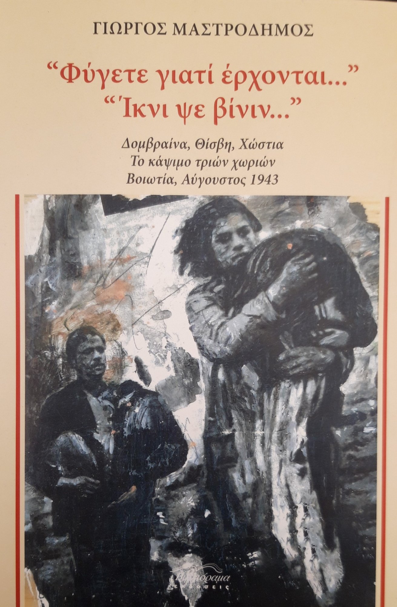 Μια ακόμα παρουσίαση του βιβλίου του Γιώργου Μαστροδήμου «Φύγετε γιατί έρχονται…» (εκδόσεις Βιβλιόραμα) για το Ολοκαύτωμα των τριών χωριών της Βοιωτίας Δομβραίνα, Θίσβη και Χώστια από τα γερμανικά στρατεύματα κατοχής τον Αύγουστο του 1943, έχει προγραμματιστεί για την προσεχή Πέμπτη 11 Απριλίου στις 6.00 μ.μ. στο Συνεδριακό Κέντρο της Νέας Ιωνίας.
