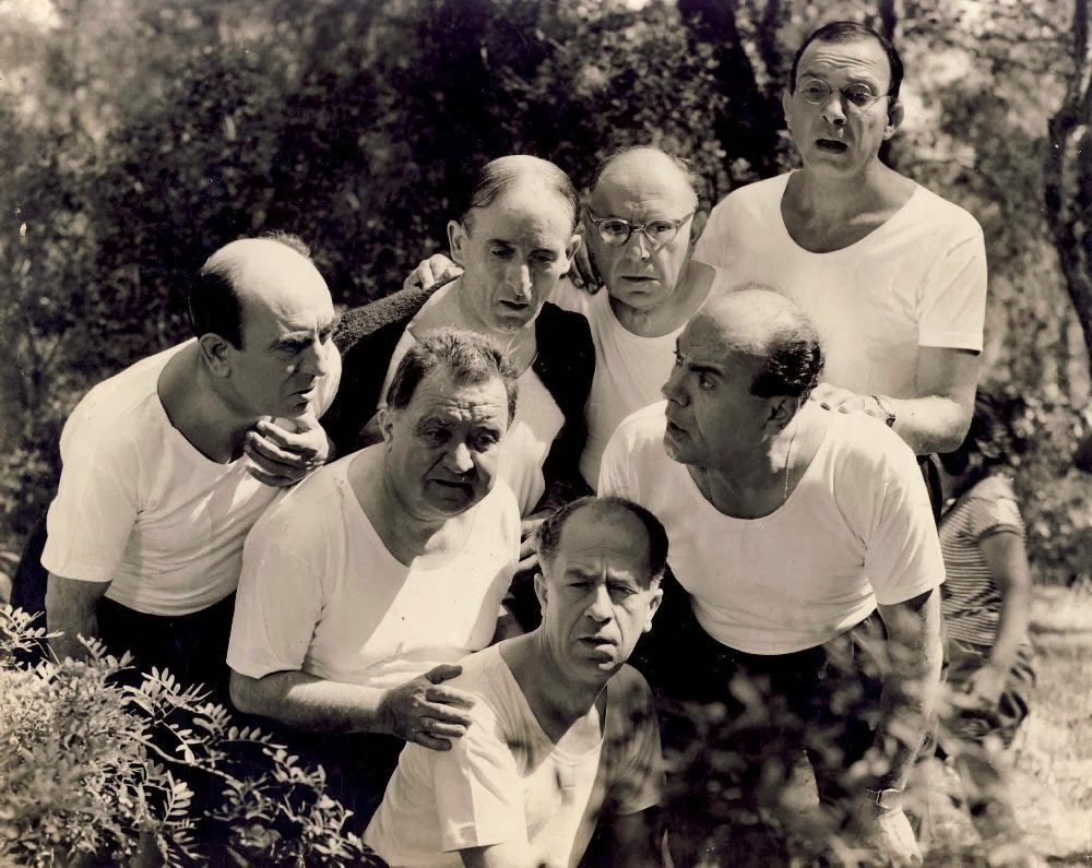 Οι Μ. Φωτόπουλος, Δ. Παπαγιαννόπουλος, Χρ. Ευθυμίου, Β. Αυλωνίτης, Ν. Σταυρίδης, Ορ. Μακρής και Α. Λειβαδίτης στα «7 γεροντοπαλίκαρα», 1960