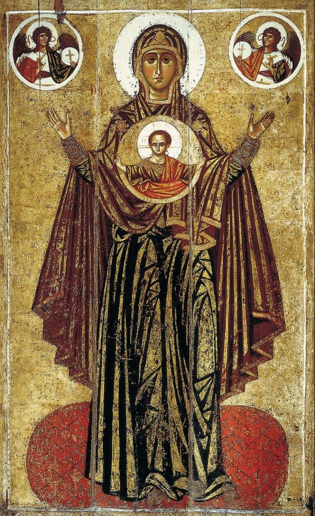 «Θεοτόκος Δεομένη», ρωσική εικόνα του 13ου αιώνα, με πρότυπο την περίφημη εικόνα της Παναγίας των Βλαχερνών