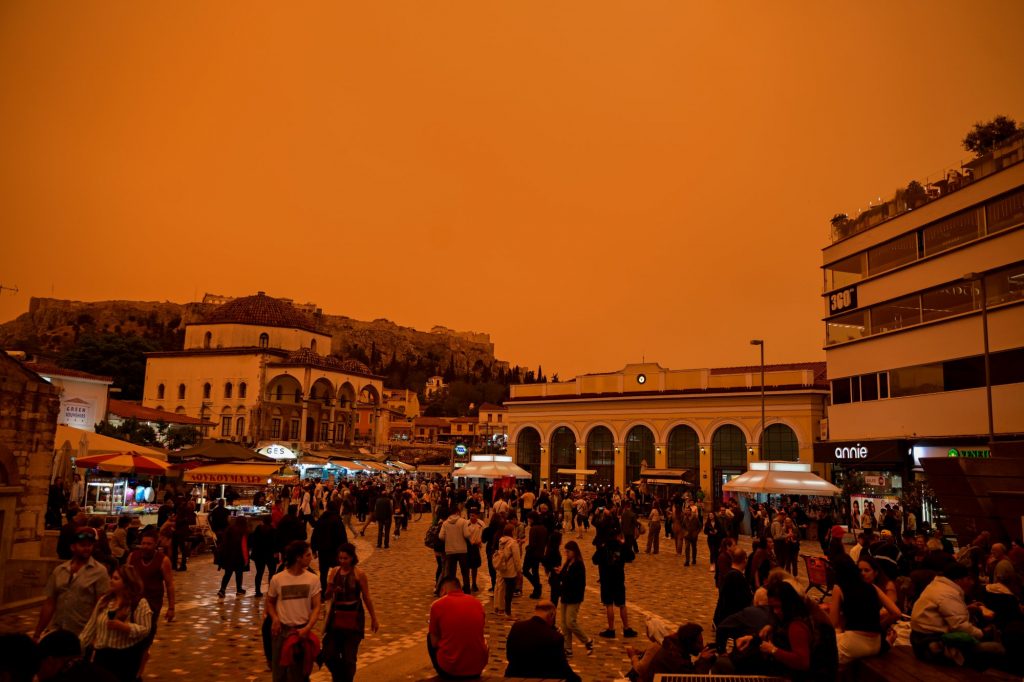 Στην κορύφωση του βρίσκεται σήμερα, Τρίτη 23/4, το νέο κύμα αφρικανικής σκόνης που έχει «καταπιεί» τον ουρανό. Οι ιδιαίτερα αυξημένες συγκεντρώσεις σκόνης έχουν δημιουργήσει ένα πορτοκαλί τοπίο, καθιστώντας την ατμόσφαιρα αποπνικτική.