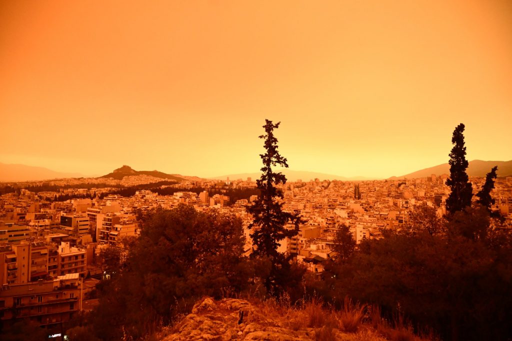 Η αφρικανική σκόνη κατέκλυσε σήμερα Τρίτη (23/4) την ατμόσφαιρα, αλλάζοντας κυριολεκτικά τα χρώματα των πόλεων και το βαθύ πορτοκαλί να κυριαρχεί στον ορίζοντα.