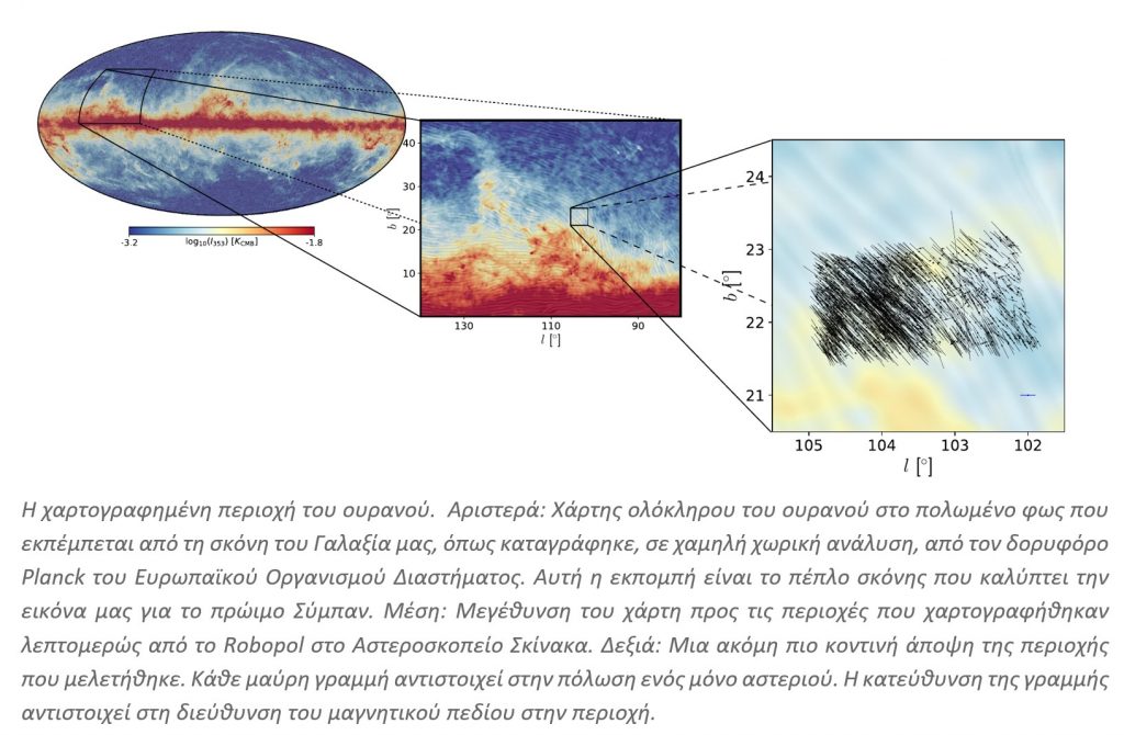 «Βρήκαμε αρκετά νέφη σκόνης σε αυτή την περιοχή του Γαλαξία και μπορέσαμε να προσδιορίσουμε τόσο τις αποστάσεις τους – έως και χιλιάδες έτη φωτός μακριά – όσο και τις πολωσιμετρικές τους ιδιότητες, αποκαλύπτοντας το μαγνητικό πεδίο που διαπερνά αυτά τα νέφη».
