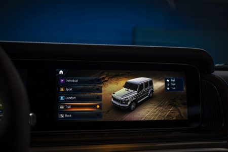 Στο εσωτερικό εκτός από το γνωστό μείγμα πολυτέλειας ψηφιακής συνειδητότητας που είναι συνυφασμένο με όλα τα νεότερα μοντέλα της γερμανικής φίρμας και στην προκειμένη περίπτωση μεταφράζεται σε δύο οθόνες 12,3 ιντσών με την νεότερη εκδοχή του MBUX, έχουν προστεθεί οι λειτουργίες του διαφανούς καπό που είδαμε πρώτα στην νέα GLC ενώ ανάμεσα στις πολλαπλές ενδείξεις off-road συγκαταλέγονται μεταξύ άλλων αποτύπωση του ορίζοντα με εικονική πραγματικότητα, πυξίδα, ένδειξη για το υψόμετρο, για την ακριβή θέση των τροχών, επίπεδα ροπής και για την πίεση των ελαστικών.