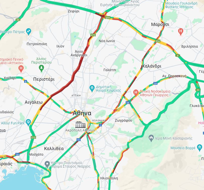 Μέχρι νωρίς το πρωί της Παρασκευής, αυξημένη κυκλοφορία εντοπίζεται παράλληλα στη Λεωφόρο Ποσειδώνος, στη Λεωφόρο Αλεξάνδρας καθώς και στη Λεωφόρο Βασιλέως Κωνσταντίνου.