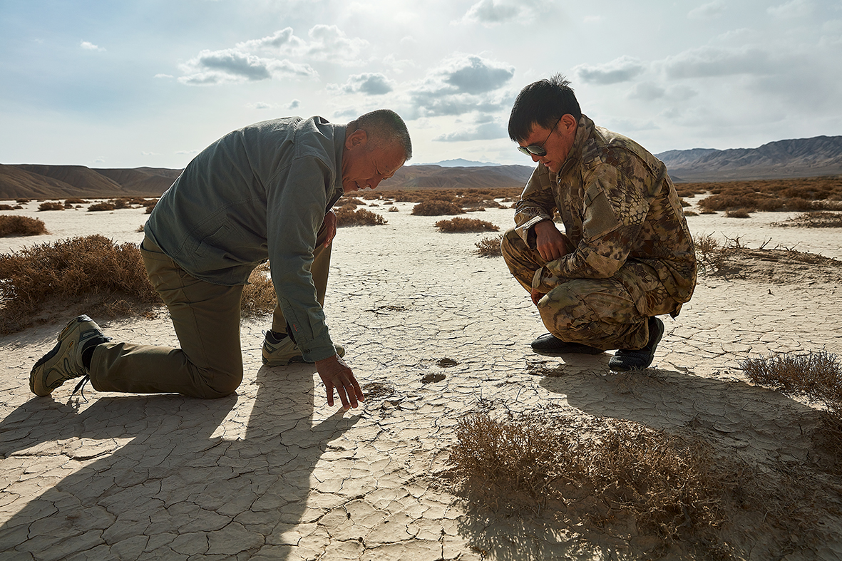 Ο Liu Shaochuang επιστρατεύει αισθητήρες απομακρυσμένου ελέγχου, ειδικές κάμερες και επιτόπια ιχνηλάτηση για να παρακολουθεί τις περιοχές όπου μετακινούνται οι καμήλες.