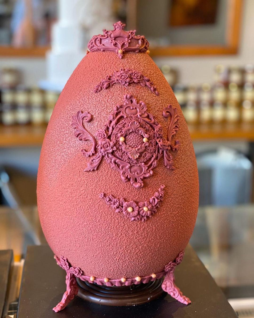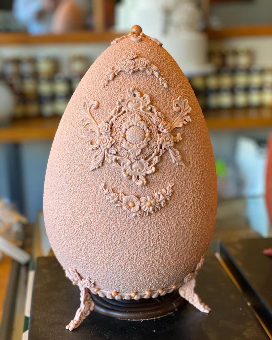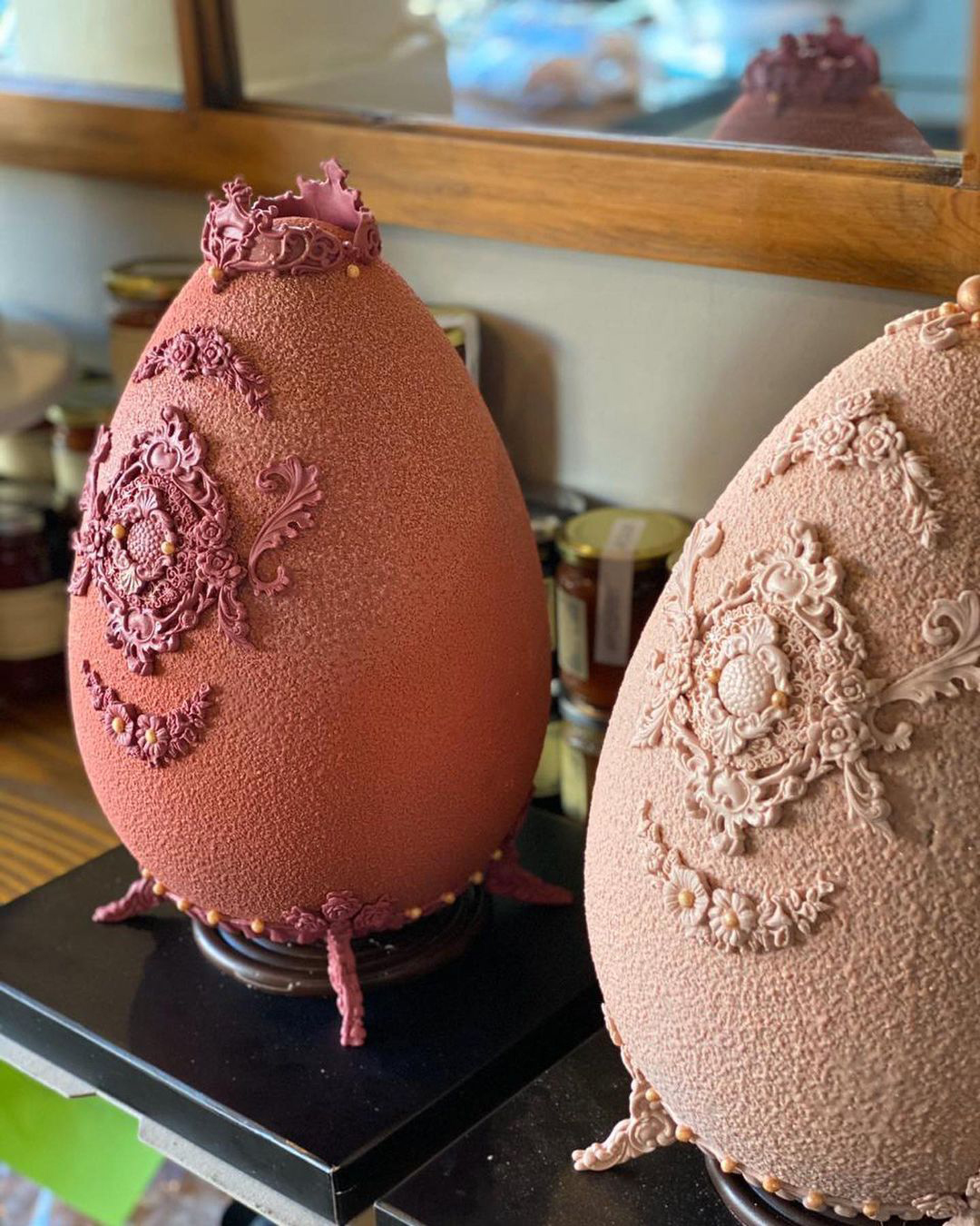 Η δεύτερη σειρά εμπνέεται από τα περίφημα «χρυσά» αβγά του οίκου Fabergé, τα οποία αρχικά προορίζονταν για πασχαλινά δώρα προς την τσαρική οικογένεια. Στο ζαχαροπλαστείο θα τα βρείτε σε παστέλ αποχρώσεις, φτιαγμένα από σοκολάτα γάλακτος ή υγείας. Προτείνουμε να κάνετε την παραγγελία σας τηλεφωνικά, καθώς αυτές τις ημέρες έχουν μεγάλη προσέλευση κόσμου.