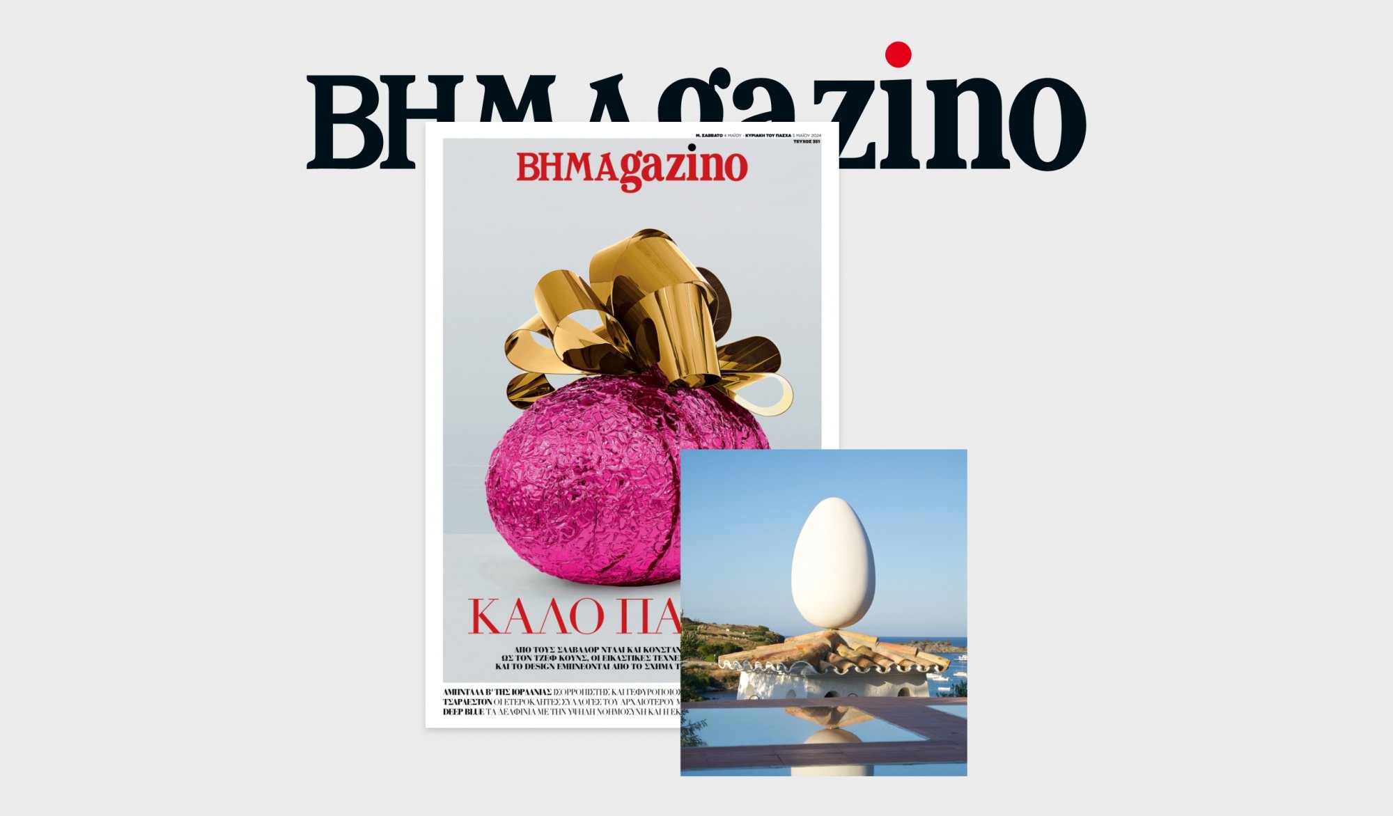 Το “BHMAGAZINO” που κυκλοφορεί εκτάκτως το Μεγάλο Σάββατο 4/5 φιλοξενεί στο εξώφυλλό του, το άκρως εντυπωσιακό, περίτεχνο αβγό του διάσημου, Αμερικανού εικαστικού Τζεφ Κουνς.