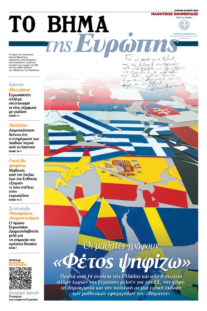 Η εφημερίδα «ΤΟ ΒΗΜΑ» μέσω του θεσμού των «Μαθητικών Εφημερίδων» και το Γραφείο Διασύνδεσης του Ευρωπαϊκού Κοινοβουλίου στην Ελλάδα θα πραγματοποιήσουν εκδήλωση στο πλαίσιο του εορτασμού της «Ημέρας της Ευρώπης» με θέμα «Η Δημοσιογραφία ως πυλώνας Δημοκρατίας. Η Δημοκρατία ως θεμελιώδης αξία της Ευρωπαϊκής Ένωσης» την Κυριακή 12 Μαΐου στην αίθουσα Anassa City Events.