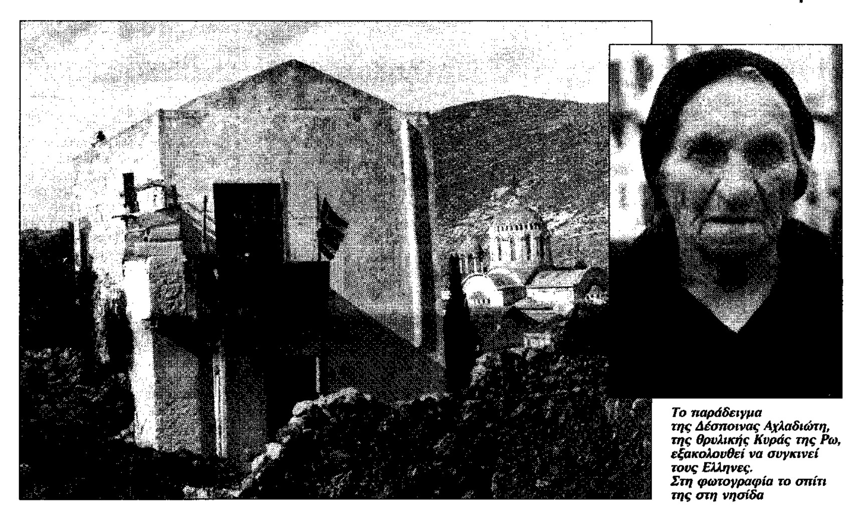 «Η “κυρά της Ρω”, η Δέσποινα Αχλαδιώτη, δίνει τη μάχη με το θάνατο, από την Παρασκευή, στο νοσοκομείο της Ρόδου.