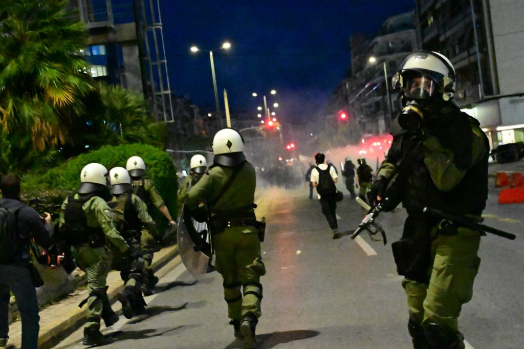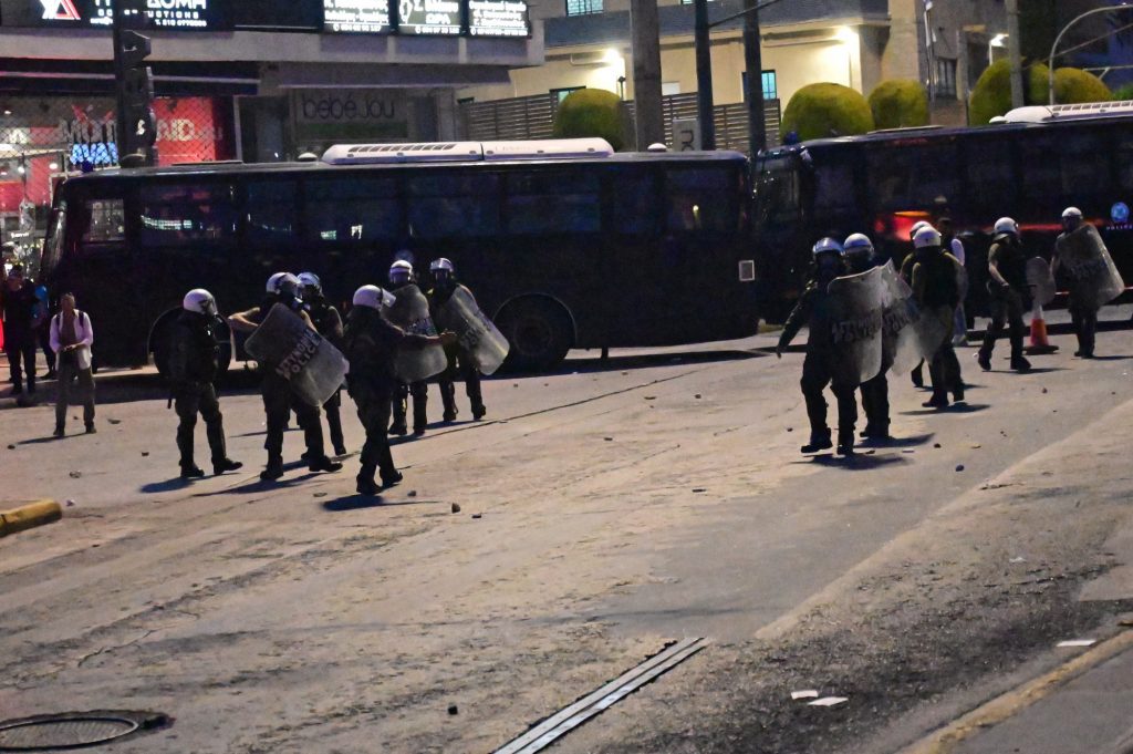 Διαδηλωτές πέταξαν πέτρες στους αστυνομικούς κι εκείνοι απάντησαν με χρήση χειροβομβίδων κρότου – λάμψης.
