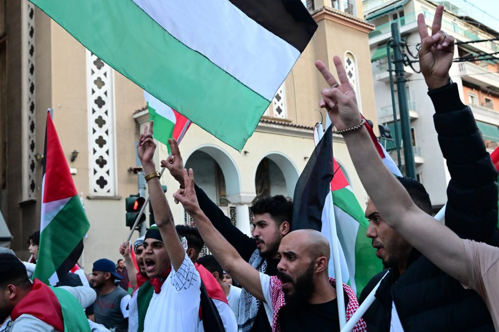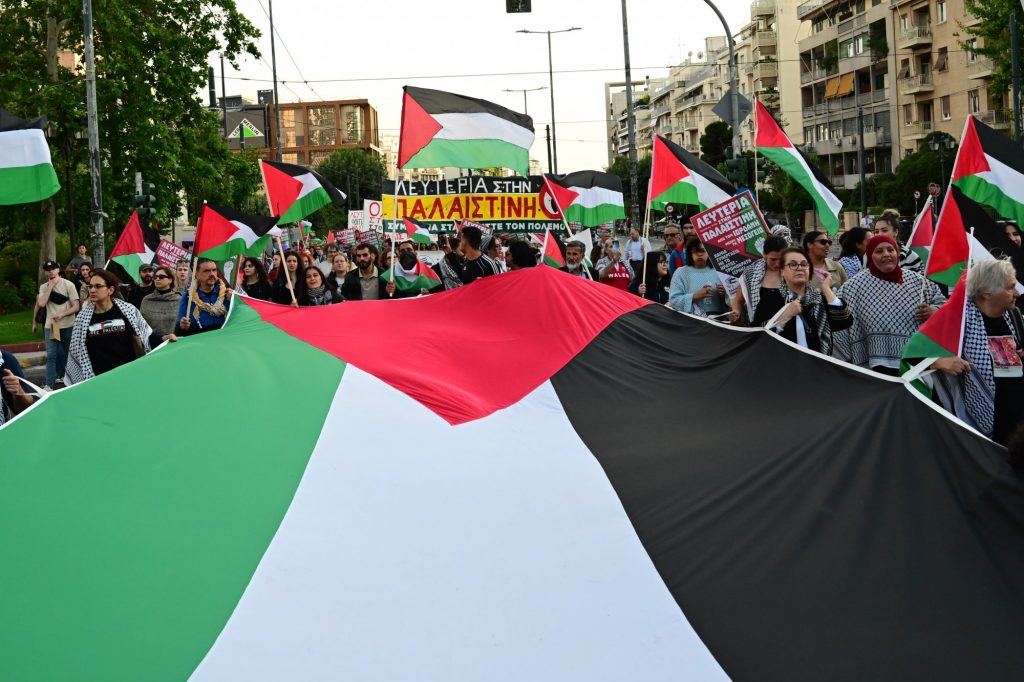 Σε εξέλιξη είναι αυτή την ώρα η προγραμματισμένη συγκέντρωση διαμαρτυρίας διαφόρων οργανώσεων για την Παλαιστίνη, στο κέντρο της Αθήνας.