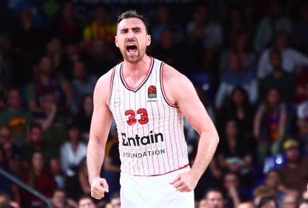 Ο Αμερικάνος σέντερ του Ολυμπιακού ακολούθησε την κίνηση του Τσέχου και φτάνοντας με το χέρι του πολύ πάνω από το ύψος της στεφάνης έστειλε την μπάλα στις κερκίδες του ΣΕΦ.