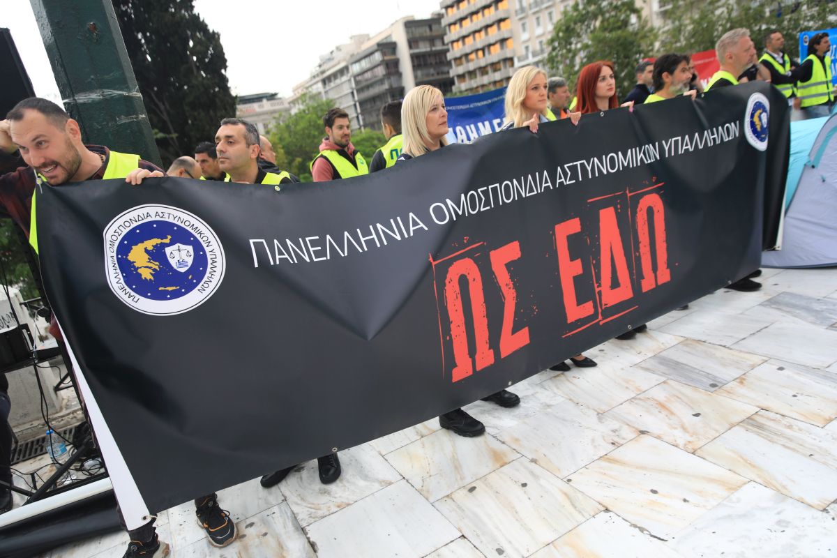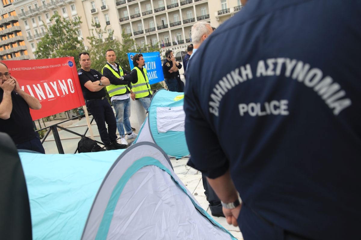 Σκηνές έστησαν στην πλατεία Συντάγματος σήμερα το πρωί αστυνομικοί, σε μια πρωτόγνωρη διαμαρτυρία.