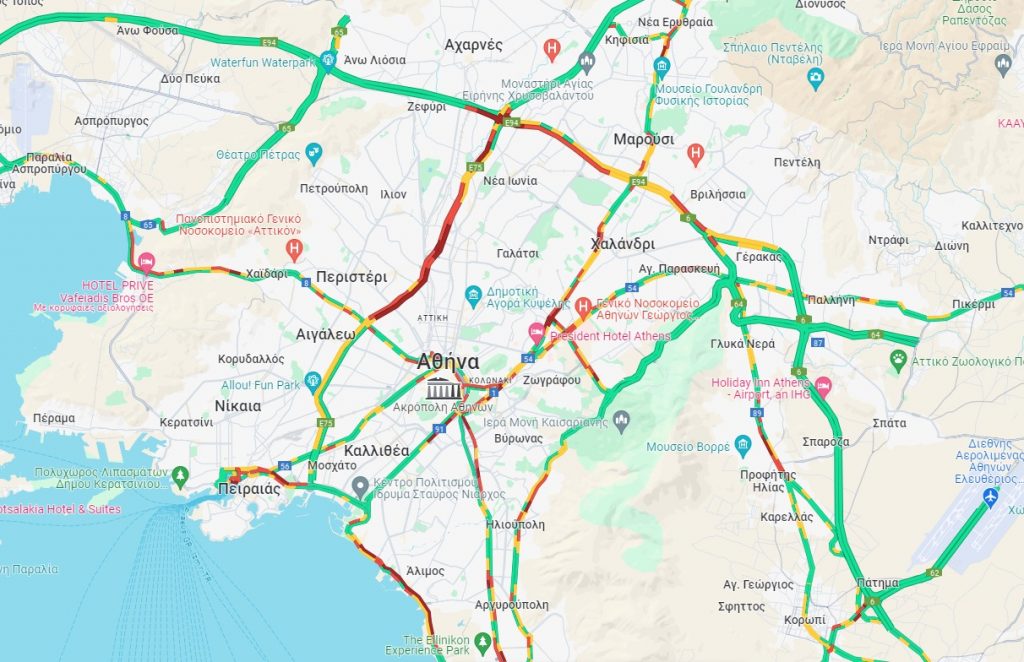 Στην Αττική Οδό υπάρχουν καθυστερήσεις 5′-10′ στην έξοδο για Λαμία στο ρεύμα προς Ελευσίνα. Καθυστερήσεις παρατηρούνται επίσης στο ρεύμα προς Αεροδρόμιο: 5′-10′ στην έξοδο για Λαμία, 10′-15′ από Μεταμόρφωση έως Κηφισίας.