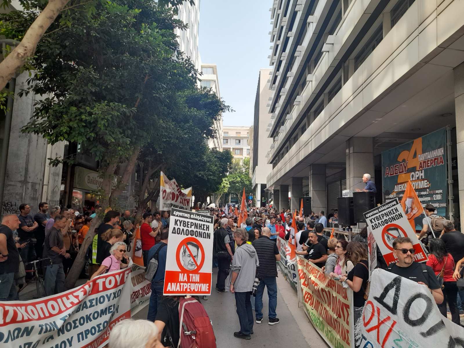 Σε εξέλιξη βρίσκεται αυτήν την ώρα το απεργιακό συλλαλητήριο της ΑΔΕΔΥ έξω από το υπουργείο Οικονομικών, στο κέντρο της Αθήνας, στο πλαίσιο της 24ωρης απεργίας που κηρύχτηκε πανελλαδικά.