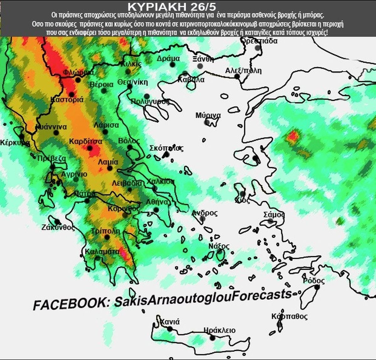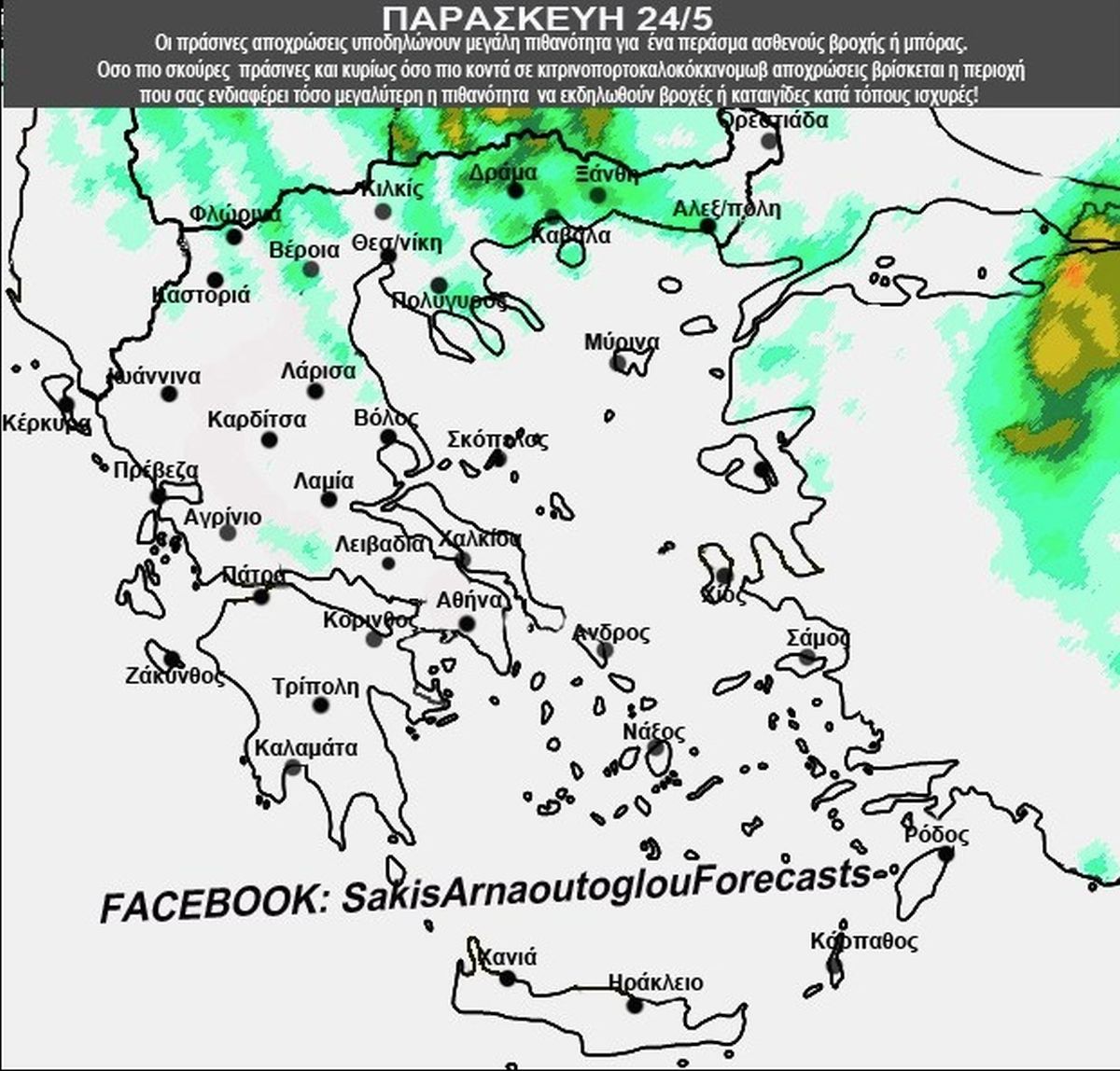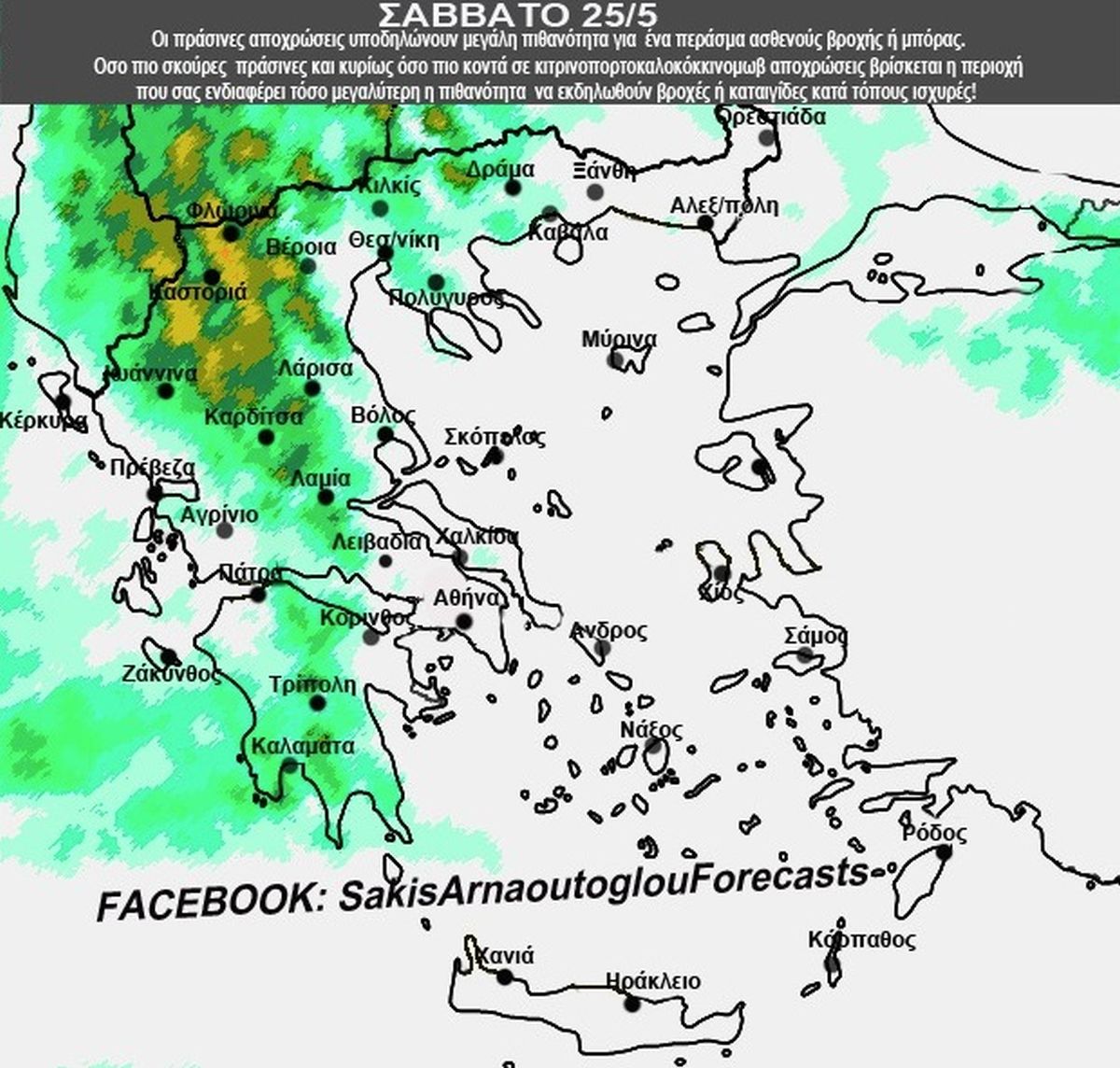 Ο Σάκης Αρναούτογλου ανήρτησε στο Facebook χάρτες με τις περιοχές που θα βρέξει.
