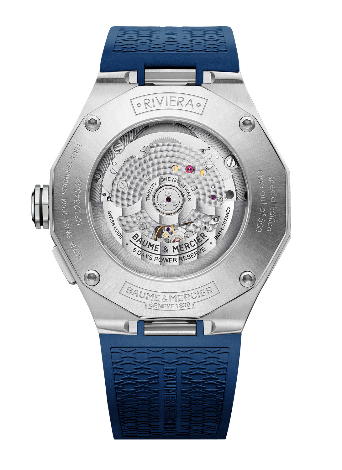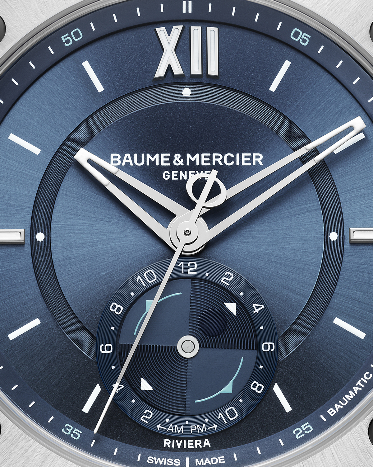 Το ρολόι αυτό είναι ένα από τα πιο συναρπαστικά της συλλογής Riviera που παρουσιάστηκε στην έκθεση Watches & Wonders της Γενεύης 2024 τον Απρίλιο. Ντυμένο στα μπλε και με δυνατότητα μέτρησης της παλίρροιας, τα ιστιοπλοϊκά γονίδια είναι προφανή στο νέο Riviera Baumatic Tideograph, μία συλλεκτική έκδοση 500 κομματιών. Φιλοξενείται σε μία δωδεκάγωνη βιδωτή κάσα από γυαλισμένο και σατινέ ανοξείδωτο ατσάλι, η οποία έχει διάμετρο 42 χιλ. και πάχος 12,3 χιλ.