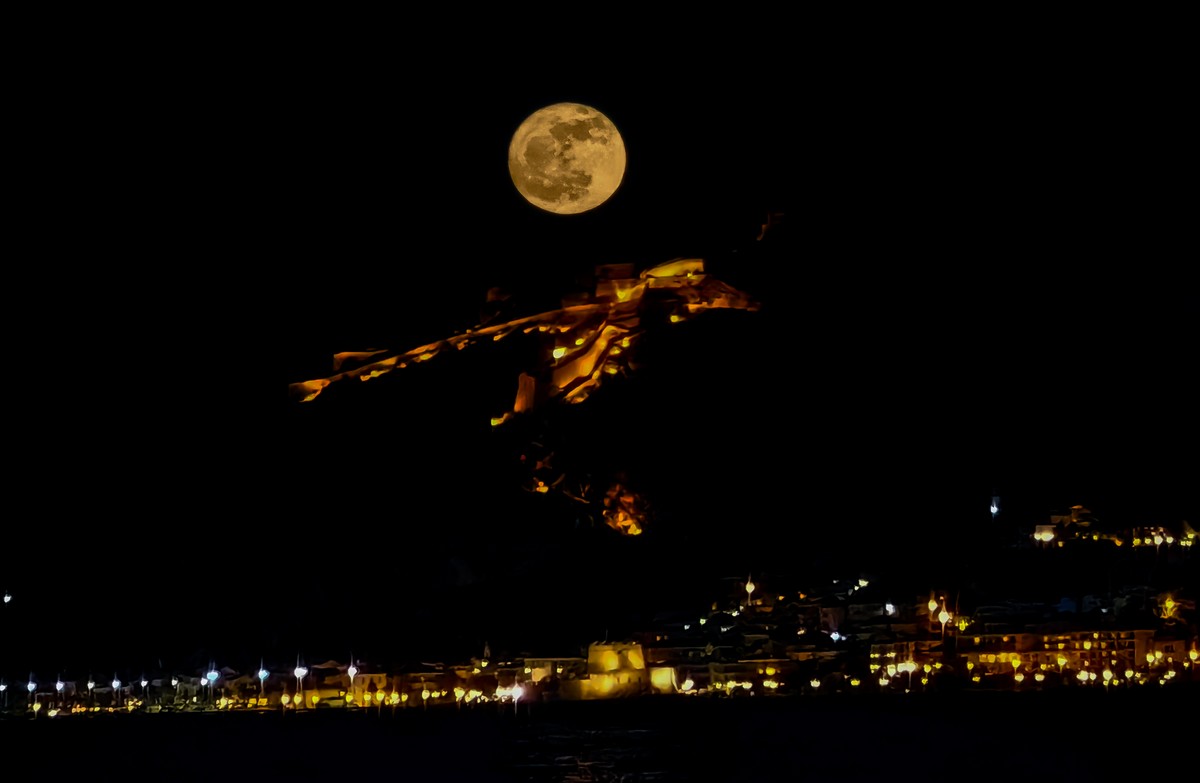 Στο Ναύπλιο ήρθε να προστεθεί μοναδικά ακριβώς πάνω από το Παλαμήδι δημιουργώντας έναν υπέροχο πίνακα ζωγραφικής σε συνδυασμό με τα φώτα, ενώ στο Σούνιο ήταν σαν να ξεπρόβαλε μέσα από τον ναό του Ποσειδώνα.