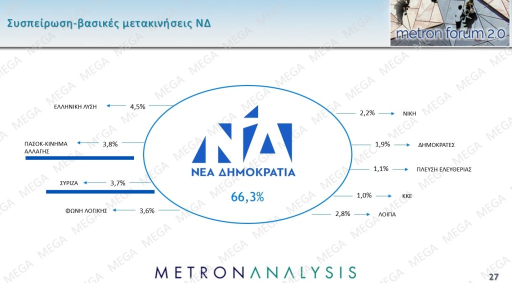 Σε μεγάλο βαθμό οι μετακινήσεις ψηφοφόρων αποτυπώνουν τη ρευστότητα του πολιτικού σκηνικού. Κάμποσοι εξ όσων προτίμησαν τη Νέα Δημοκρατία ένα χρόνο πριν δεν αποκλείουν το ενδεχόμενο να επιλέξουν ΠαΣοΚ ή ΣΥΡΙΖΑ. Όπως αντίστοιχα ισχύει με τη βάση της Χαριλάου Τρικούπη.