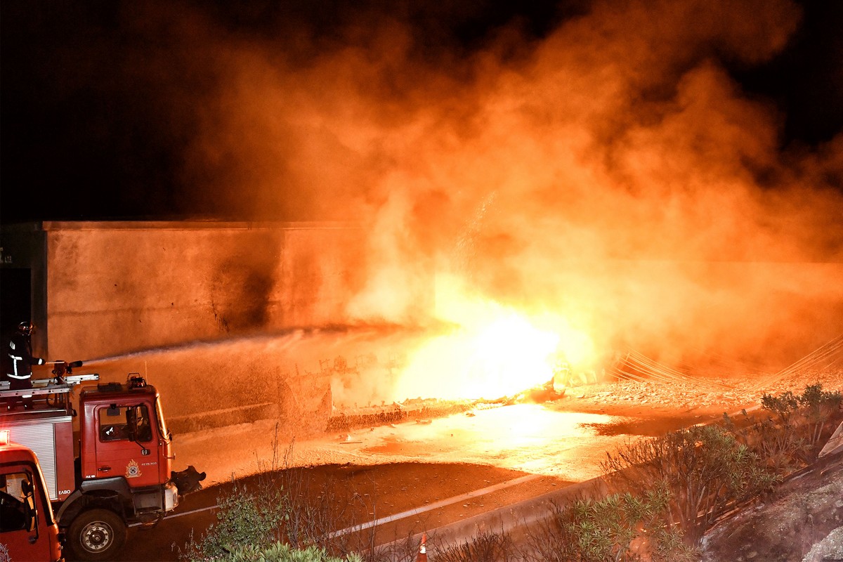 «Πάτησε ένα από τα μπροστινά λάστιχα σε κάποιο αντικείμενο στο οδόστρωμα με αποτέλεσμα να σκάσει και έτσι να χάσω τον έλεγχο του οχήματος και να ανατραπεί». Αυτά φέρεται να υποστήριξε στα στελέχη της Πυροσβεστικής ο 60χρονος οδηγός του βυτιοφόρου το οποίο τυλίχθηκε στις φλόγες χθες το βράδυ στο 75ο χιλιόμετρο της Εθνικής Οδού Αθηνών – Κορίνθου στο ύψος του Ισθμού με αποτέλεσμα να διακοπεί για πολλές ώρες η κυκλοφορία.