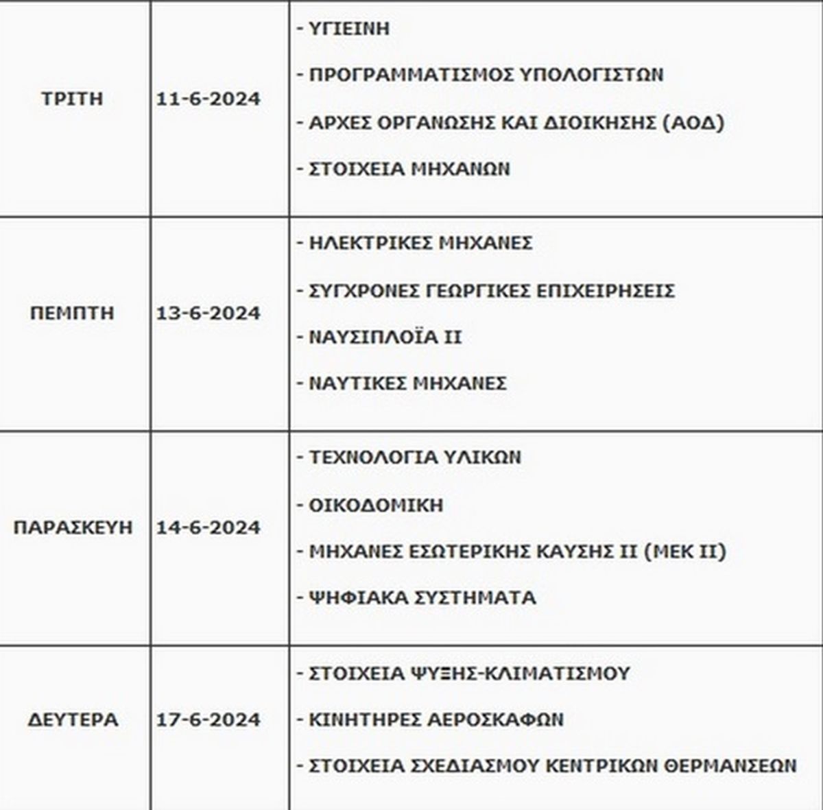 Η ίδια μέρα είναι η τελευταία ημέρα διεξαγωγής προαγωγικών εξετάσεων για την Α’ και Β’ Λυκείου. Οι εξετάσεις στα Γυμνάσια ολοκληρώνονται τη Δευτέρα 17 Ιουνίου 2024.