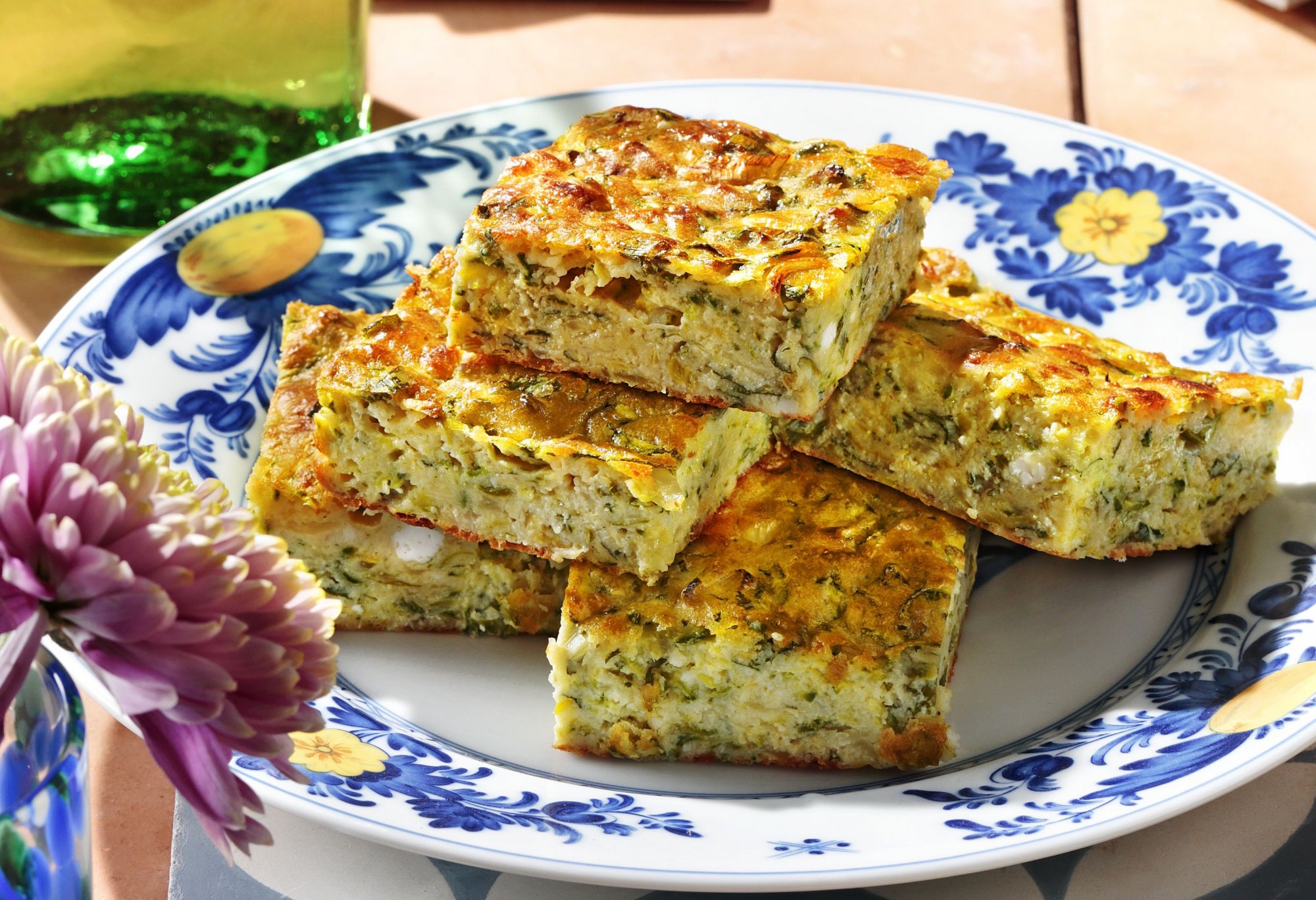 Πίτα χωρίς φύλλο με κολοκυθάκια, δυόσμο, ανθότυρο & χαλούμι