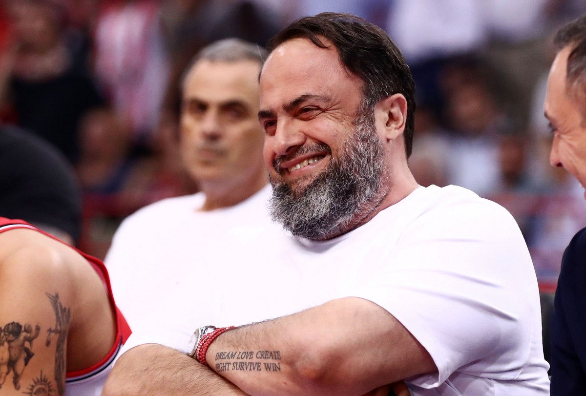 Δίπλα στην μπασκετική ομάδα του Ολυμπιακού βρέθηκε ο ηγέτης του πειραϊκού συλλόγου, Βαγγέλης Μαρινάκης.